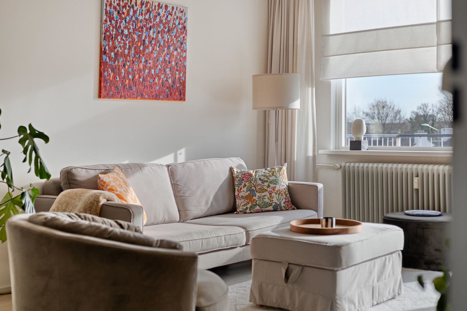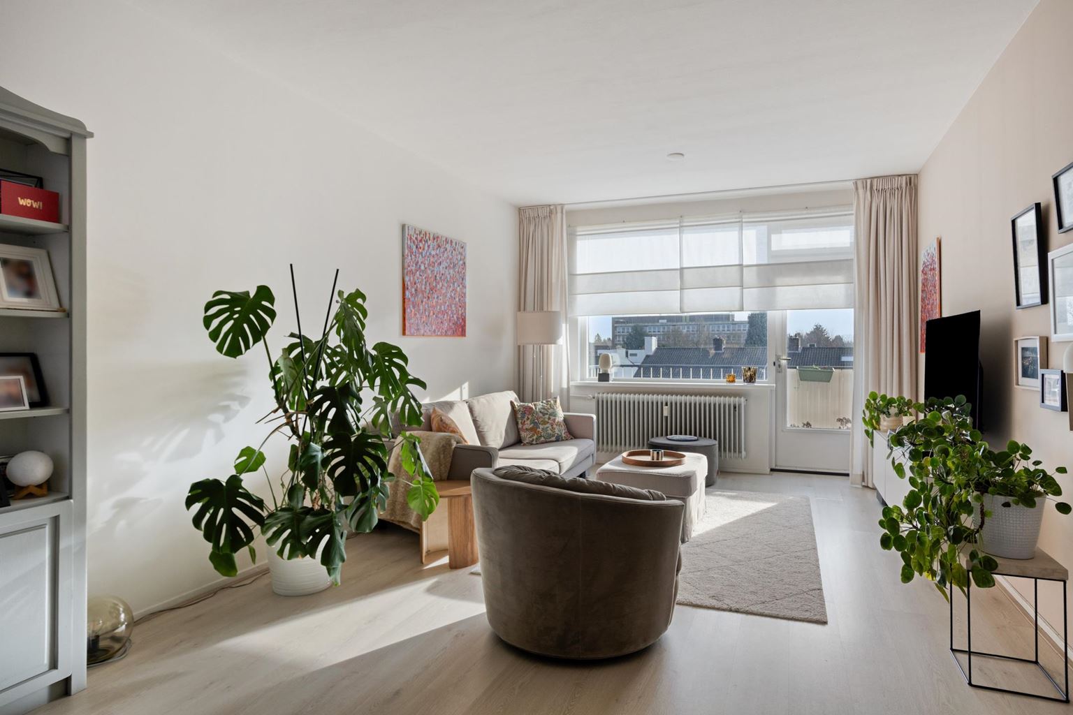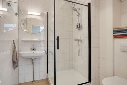 This spacious, ready-to-move-in apartment with a practical layout is located on the fourth floor in the popular Brusselsepoort neighborhood. The apartment has a living room with windows on both sides, a comfortable bedroom, a separate kitchen, a neat bathroom, a southeast-facing balcony, and a spacious private storage room in the basement. Located in an apartment complex with an elevator, directly adjacent to the "Brusselse Poort" shopping center.