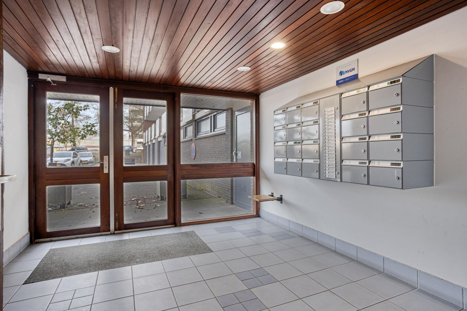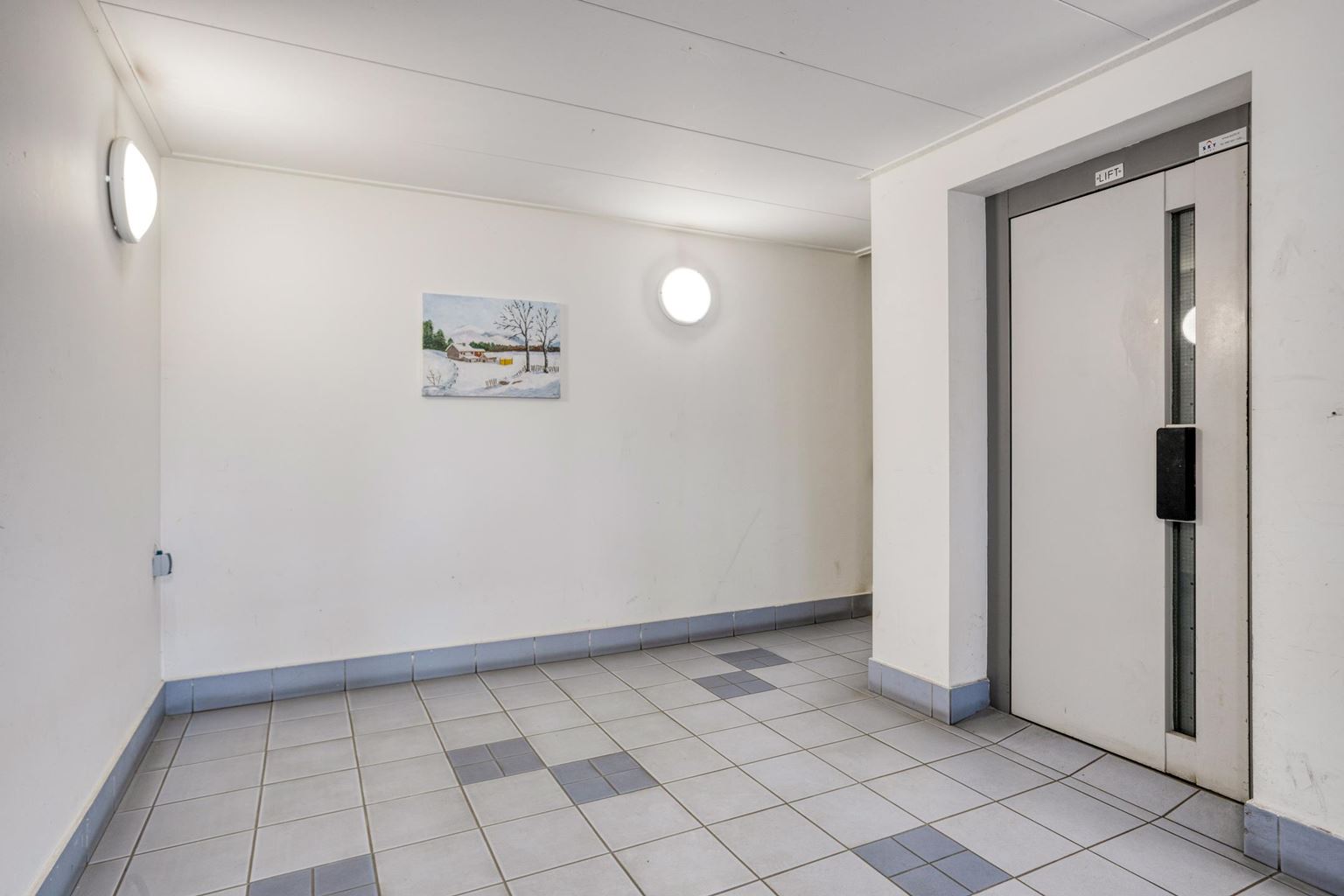 Central entrance with doorbells and intercom. The fourth floor is easily accessible by elevator or staircase.