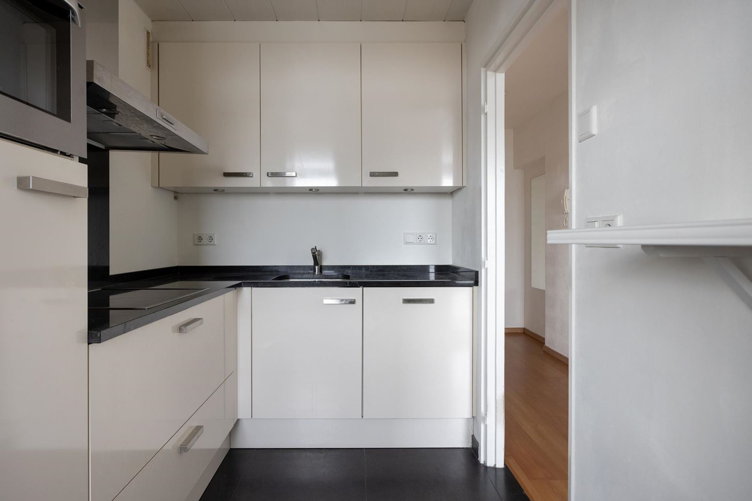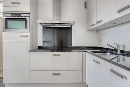 The separate corner kitchen (7m²) features a kitchen unit with wall and base cabinets and various (built-in) appliances, namely: a 4-ring ceramic hob with extractor hood, a combi-oven, a dishwasher, a sink and a fridge without a freezer compartment. The kitchen leads to the utility room (4m²), where the white goods connections are located and the boiler for the hot water is situated.