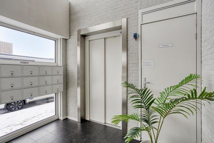 Well-maintained central entrance with doorbells, letterboxes, staircase and lift.