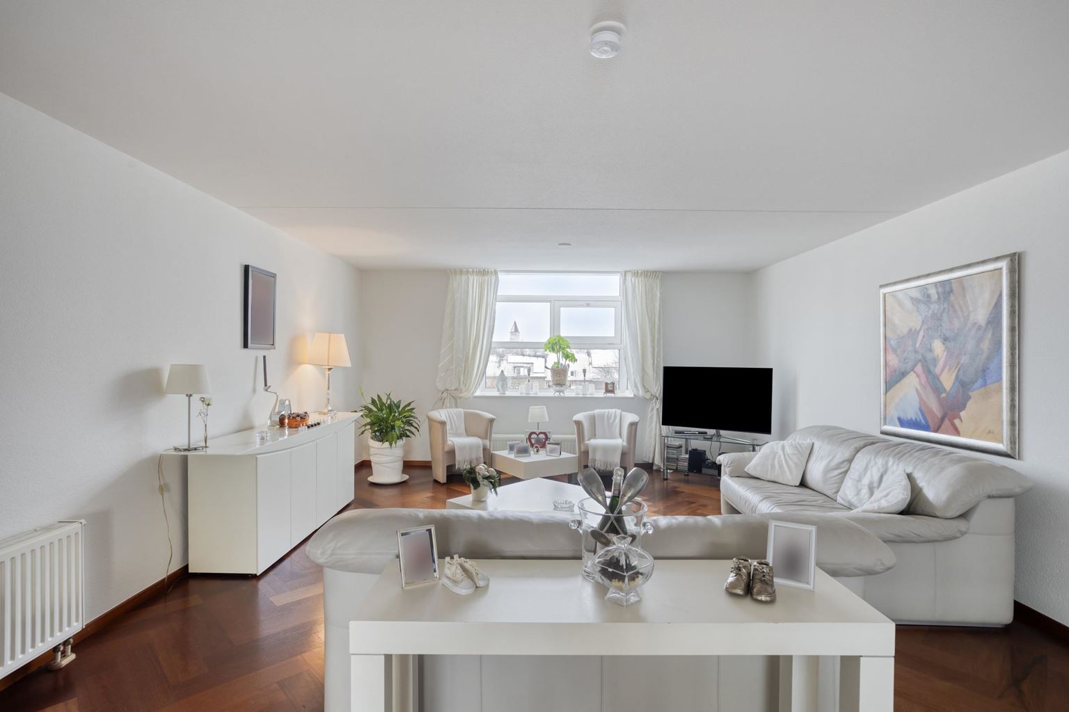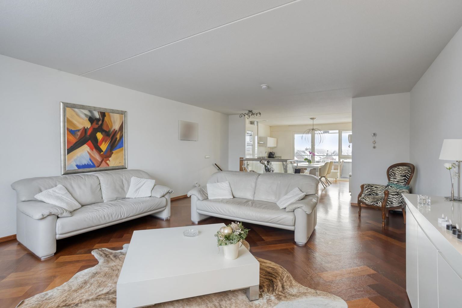 The sunny balcony extends across the entire width of the flat, has decking and is conveniently south-facing. Here you can enjoy the sun to the fullest. There is also the option of installing screens.