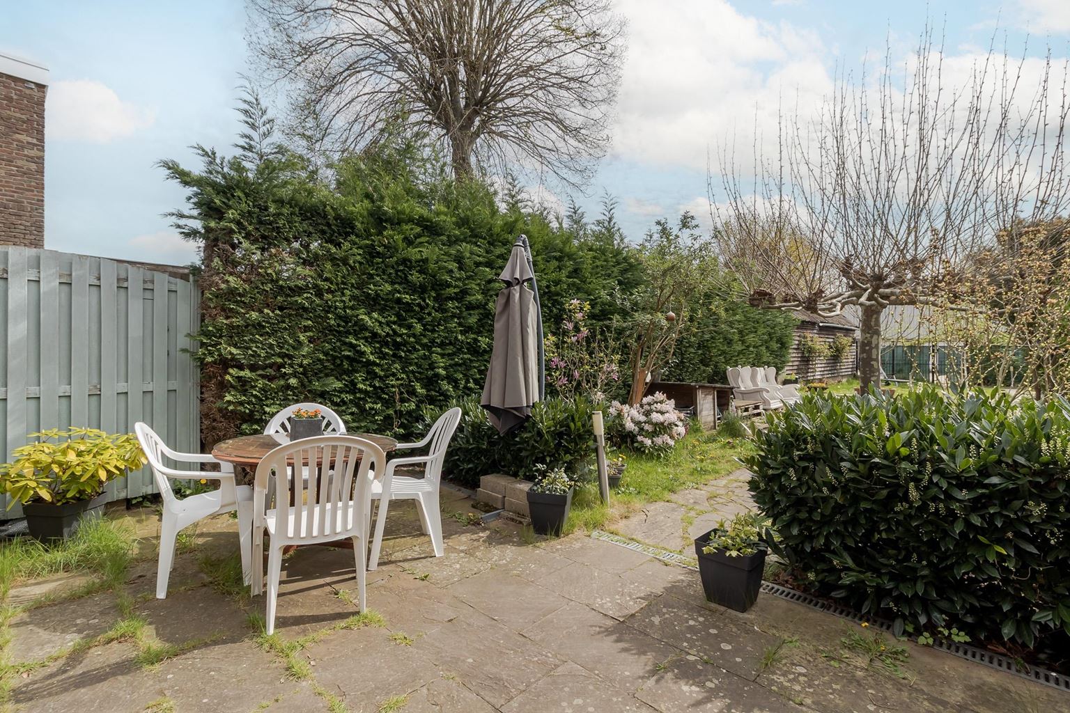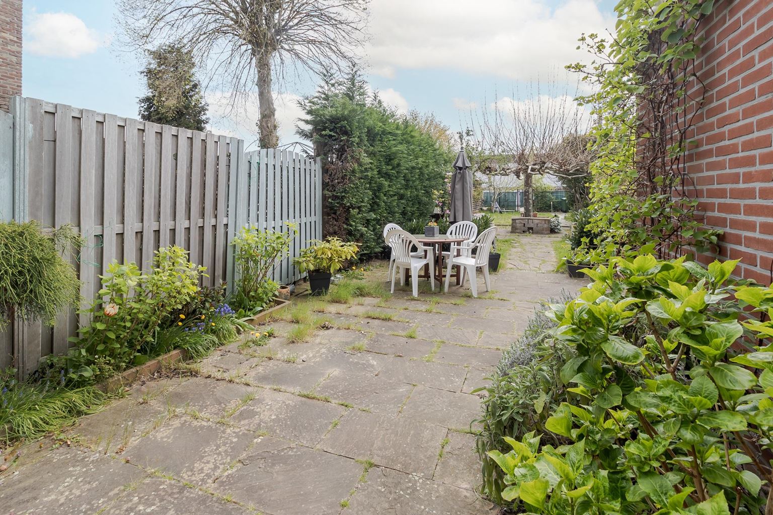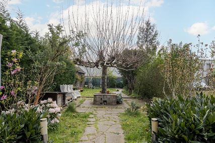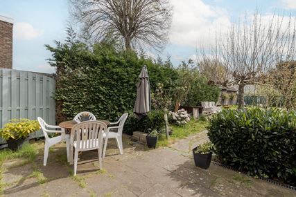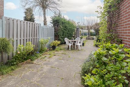 The backyard is notably spacious and ideally situated facing south, allowing you to fully enjoy the sun. The garden is landscaped with greenery and offers multiple seating areas and plenty of privacy. There is also a large storage shed (12 m²) equipped with water and electricity.
