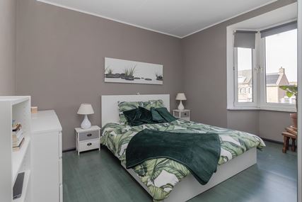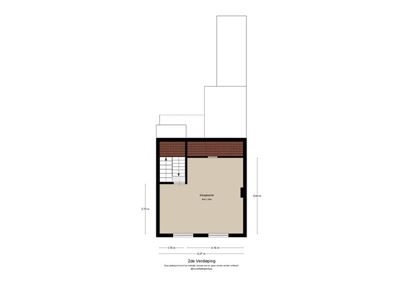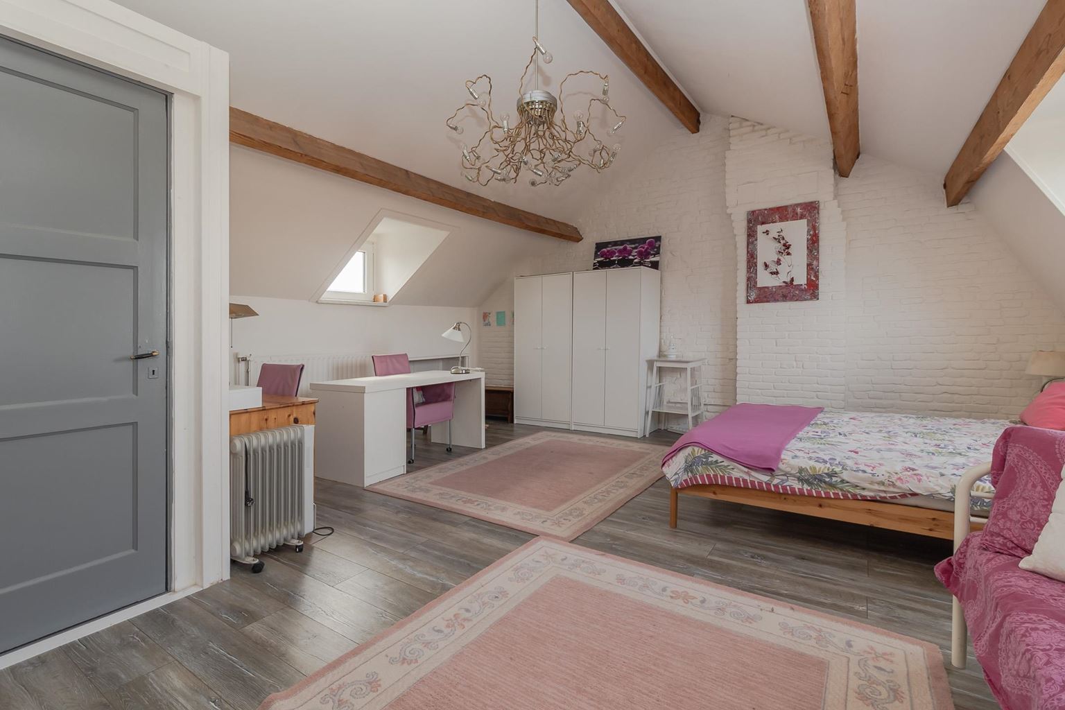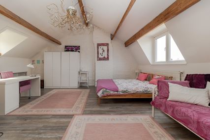 Via a fixed staircase, you reach the second floor. Here you will find a spacious bedroom (31 m²) spanning the full width of the house. Thanks to three dormer windows (two at the front and one at the rear), there is additional space and natural light. The floor is finished with laminate, and practical storage space has been created under the sloping roof.