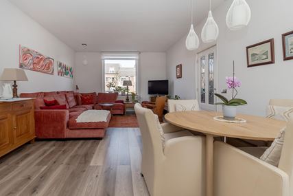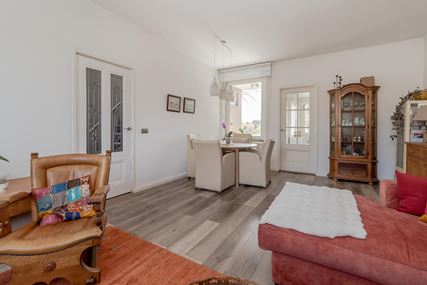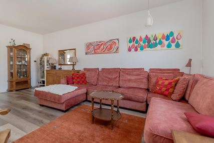 The through-living room (29 m²) is spacious and characterized by pleasant natural light thanks to large windows at both the front and rear. The space is finished with laminate flooring and offers various layout possibilities.