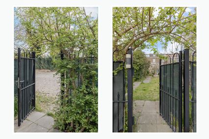 Via a rear entrance, you reach a communal area with access to the garage boxes. The property includes two connected garage boxes, one with an electric sectional door and the other manually operated.