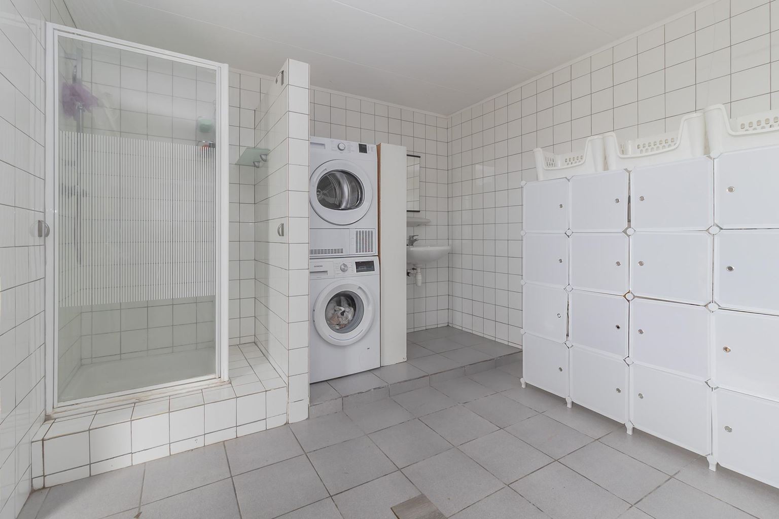 There is also a spacious, closed, simple eat-in kitchen (11 m²) in a straight layout, equipped with a 4-burner gas stove with extractor hood, sink, and separate refrigerator. This space also houses the central heating system (Intergas HRE, year of construction 2024, rental) and the electric boiler (year of construction 2024, rental). The second kitchen also provides access to the garden through double doors.