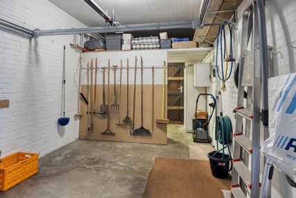Spacious integral garage (approx. 19 m²), accessible from the hall. The garage is equipped with lighting, electricity, washing machine connections, a loft, and an electric sectional door. There is also access to the backyard from the garage.