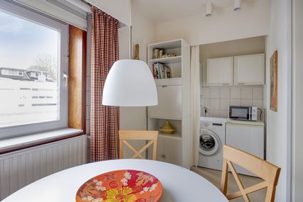 The kitchen also contains the laundry connections and the central heating boiler (brand: Remaha Calenta 28c, rental, year of construction 2012). The entrance hall can also be accessed from the kitchen.