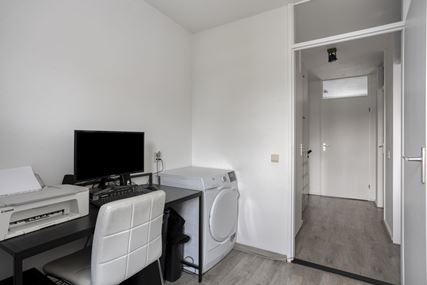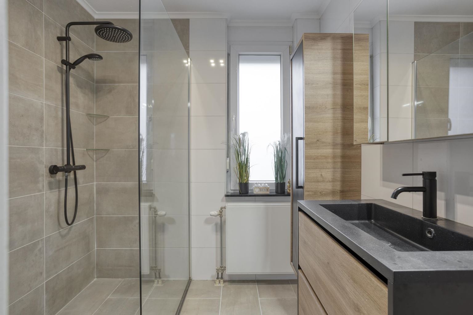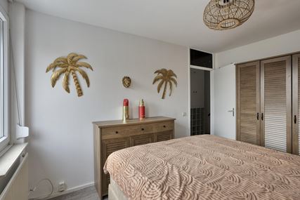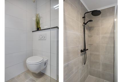 A fixed staircase leads to a landing with access to three bedrooms, the utility room and the bathroom. Bedrooms 1 and 2 (approx. 11 and 6m²) are located at the rear of the house. Bedroom 3 (approx. 12m²) is located at the front. The bedrooms all have neat laminate flooring, plastic window frames with insulating HR glazing and roller shutters. The utility room houses the central heating boiler (Nefit, HR combi, owned & built in 2023), the mechanical ventilation unit and the connections for the washing machine. The modern bathroom (approx. 4m²) is fully tiled and equipped with a spacious (walk-in) shower with rain and hand shower, a designer radiator, a washbasin in a vanity unit and a wall-mounted toilet. The whole is neatly finished and equipped with mechanical ventilation.