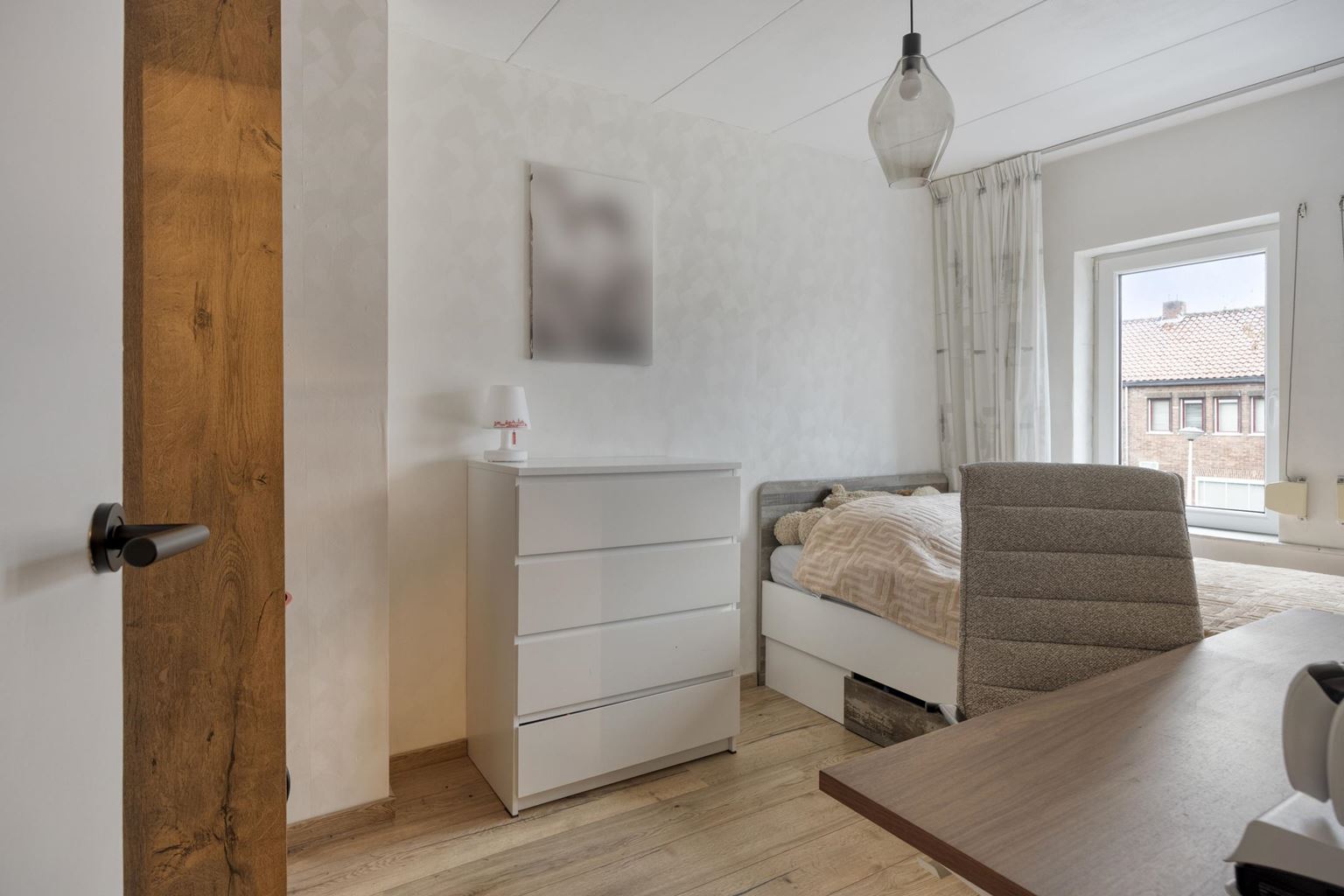 The second floor is arranged as a third bedroom (21 m²), also finished with laminate flooring. This level also houses the central heating system (Nefit HR). The property benefits from roof insulation.