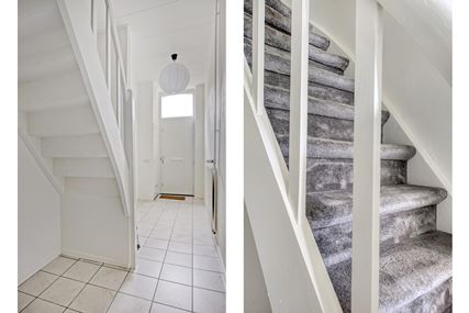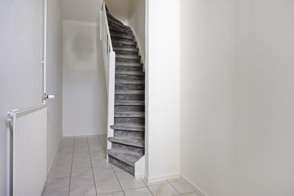 Large reception hall (approx. 11m²) with a neatly tiled floor, a meter cabinet (4 circuits, 1 earth leakage circuit breaker, and smart meters) and a stairway to the upper floors. The rear of the hall offers ample storage space for bicycles. The hall is also wide, long, and high enough to accommodate large wall cabinets for additional storage.