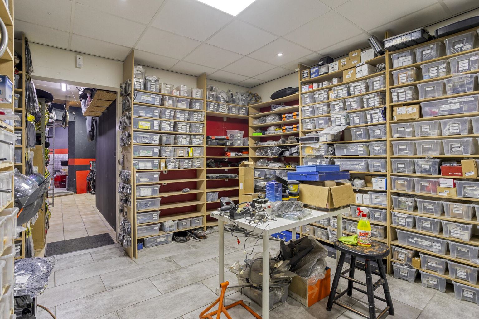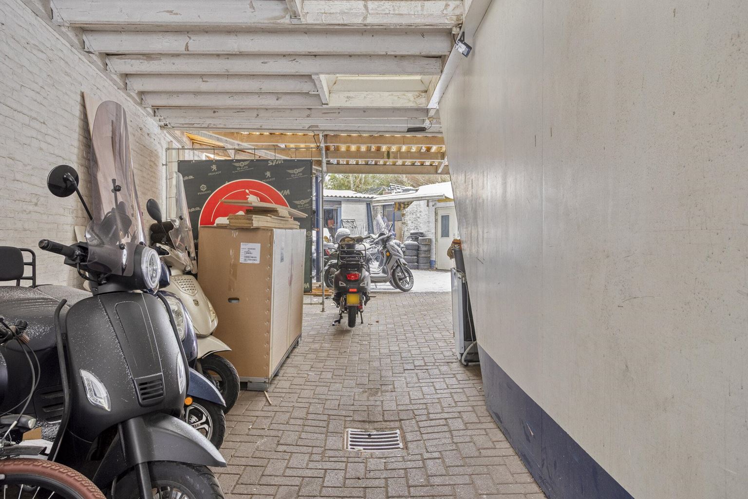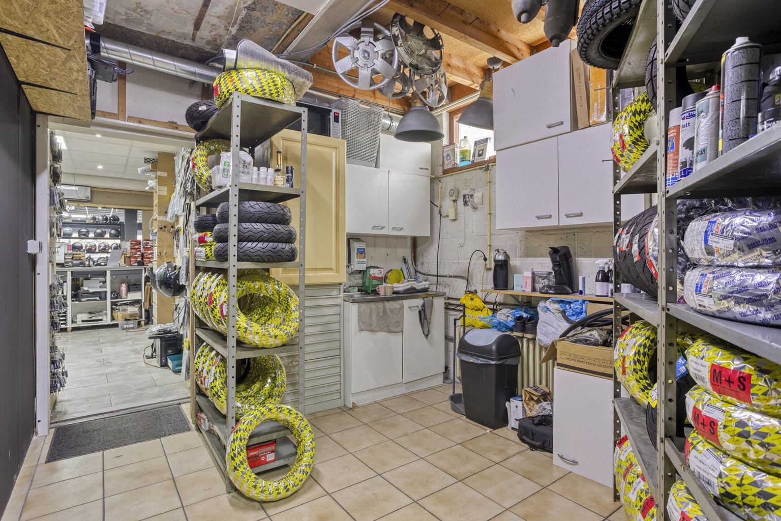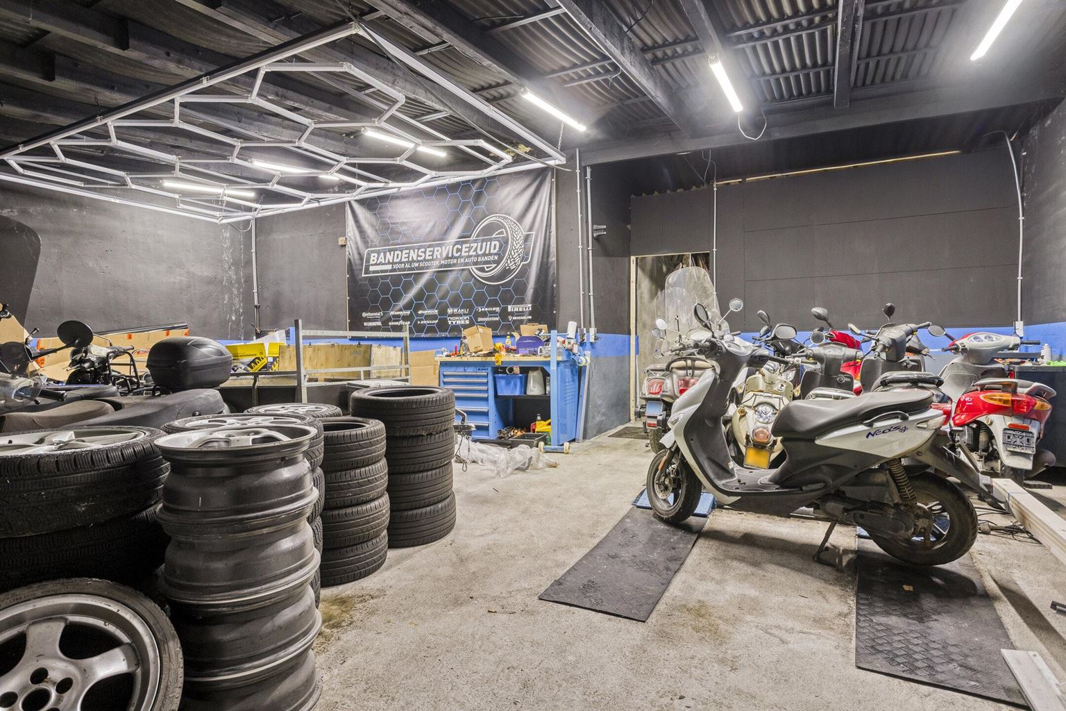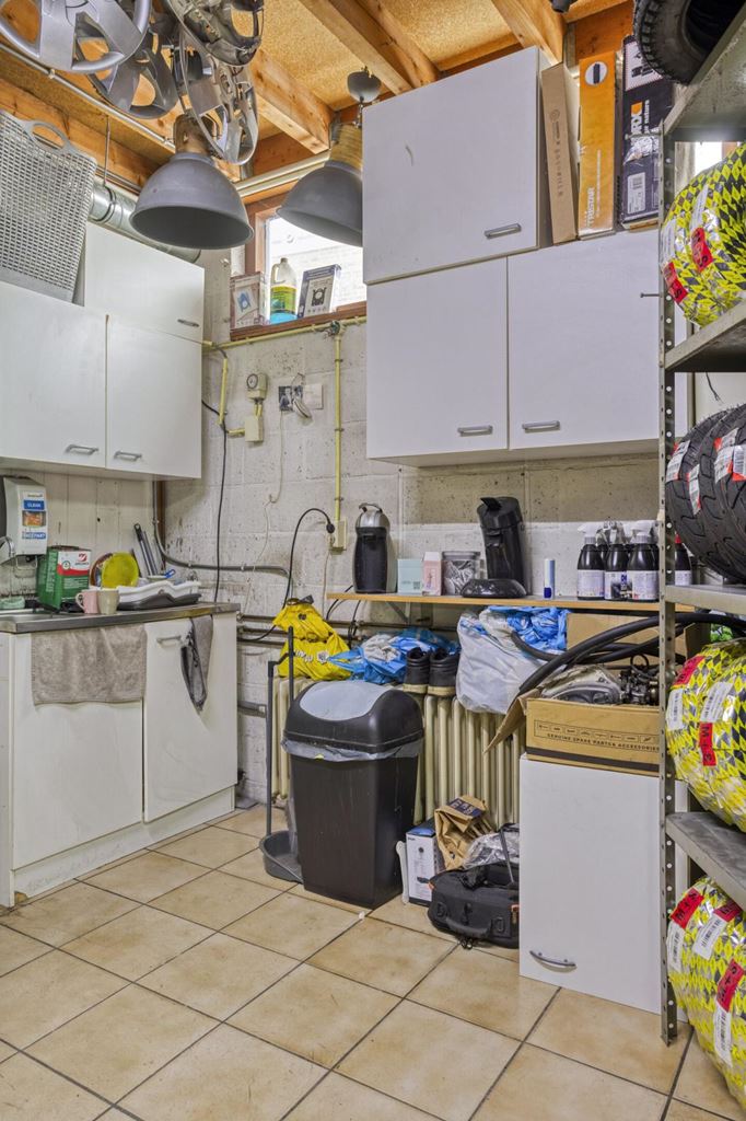 The commercial space is currently furnished with a representative showroom at the front of approximately 67 m². Adjacent to this is a separate office space of approximately 24 m², which is directly connected to the front space and provides a pleasant separation between the reception and work space. This office space provides access to a private, spacious basement of approximately 20 m², which is ideal for storage purposes. At the rear of the commercial space is a spacious workshop of approximately 33 m², which, thanks to its layout and dimensions, offers plenty of opportunities for practical work. In addition, the ground floor has a utility room of approximately 17 m² and a separate toilet, which contributes to the comfort and independence of the commercial unit. At the rear of the plot, there is also a very spacious storage area of approximately 85 m², as well as an additional workspace of approximately 66 m², which is equipped with a roller door and is directly accessible via the back entrance.