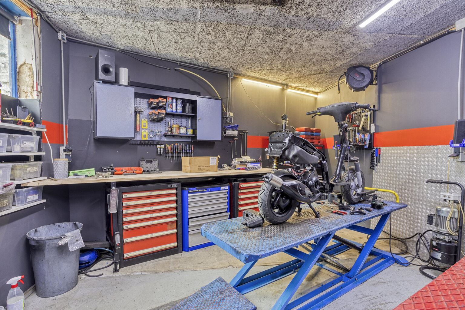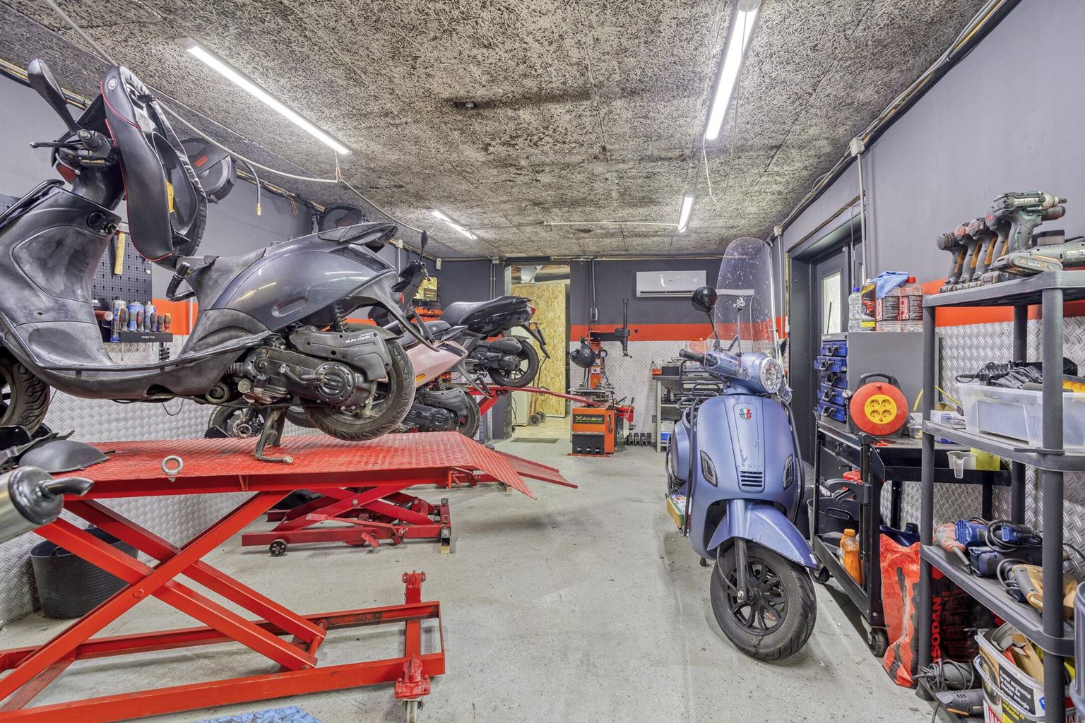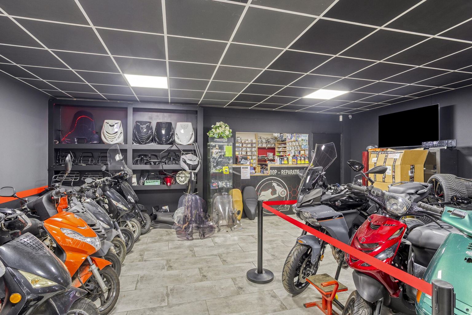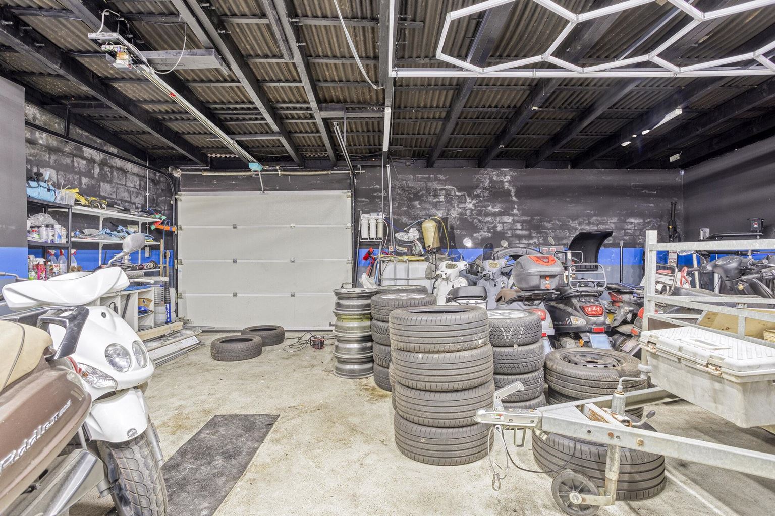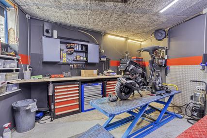 The commercial space is currently furnished with a representative showroom at the front of approximately 67 m². Adjacent to this is a separate office space of approximately 24 m², which is directly connected to the front space and provides a pleasant separation between the reception and work space. This office space provides access to a private, spacious basement of approximately 20 m², which is ideal for storage purposes. At the rear of the commercial space is a spacious workshop of approximately 33 m², which, thanks to its layout and dimensions, offers plenty of opportunities for practical work. In addition, the ground floor has a utility room of approximately 17 m² and a separate toilet, which contributes to the comfort and independence of the commercial unit. At the rear of the plot, there is also a very spacious storage area of approximately 85 m², as well as an additional workspace of approximately 66 m², which is equipped with a roller door and is directly accessible via the back entrance.
