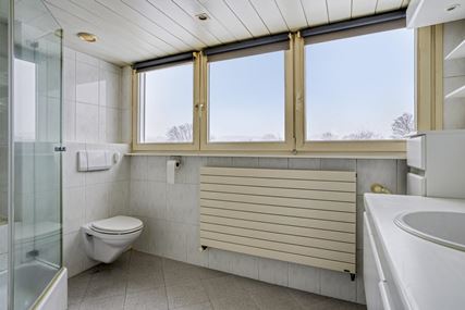 The second floor is also spacious and has three large bedrooms. There is also a spacious bathroom with a shower, toilet and washbasin. The landing also provides access to the attic. This floor offers plenty of practical storage space and also houses the central heating system.