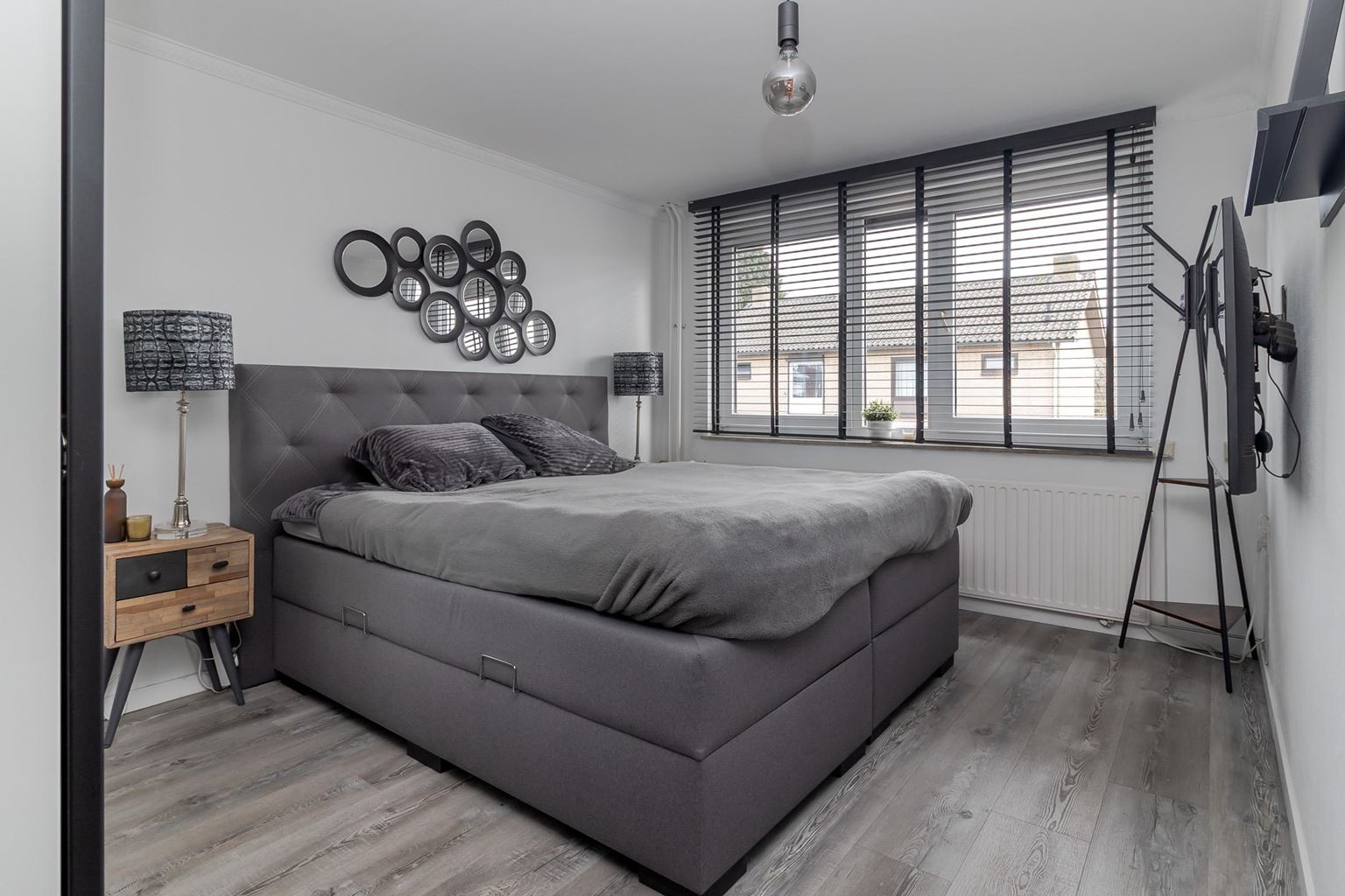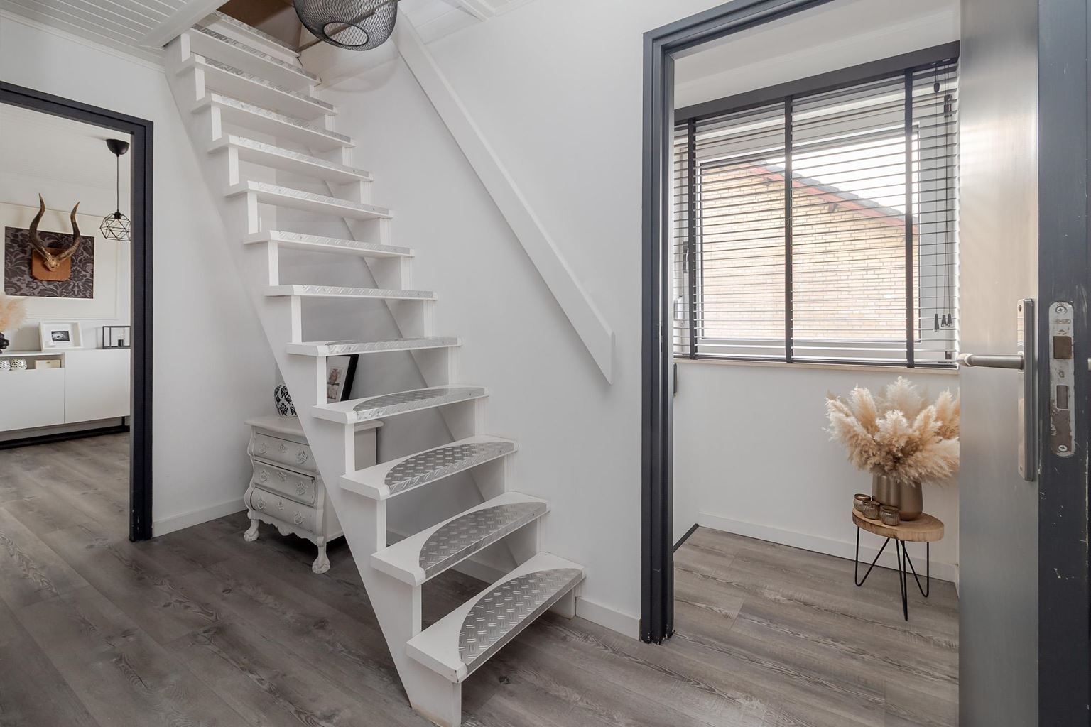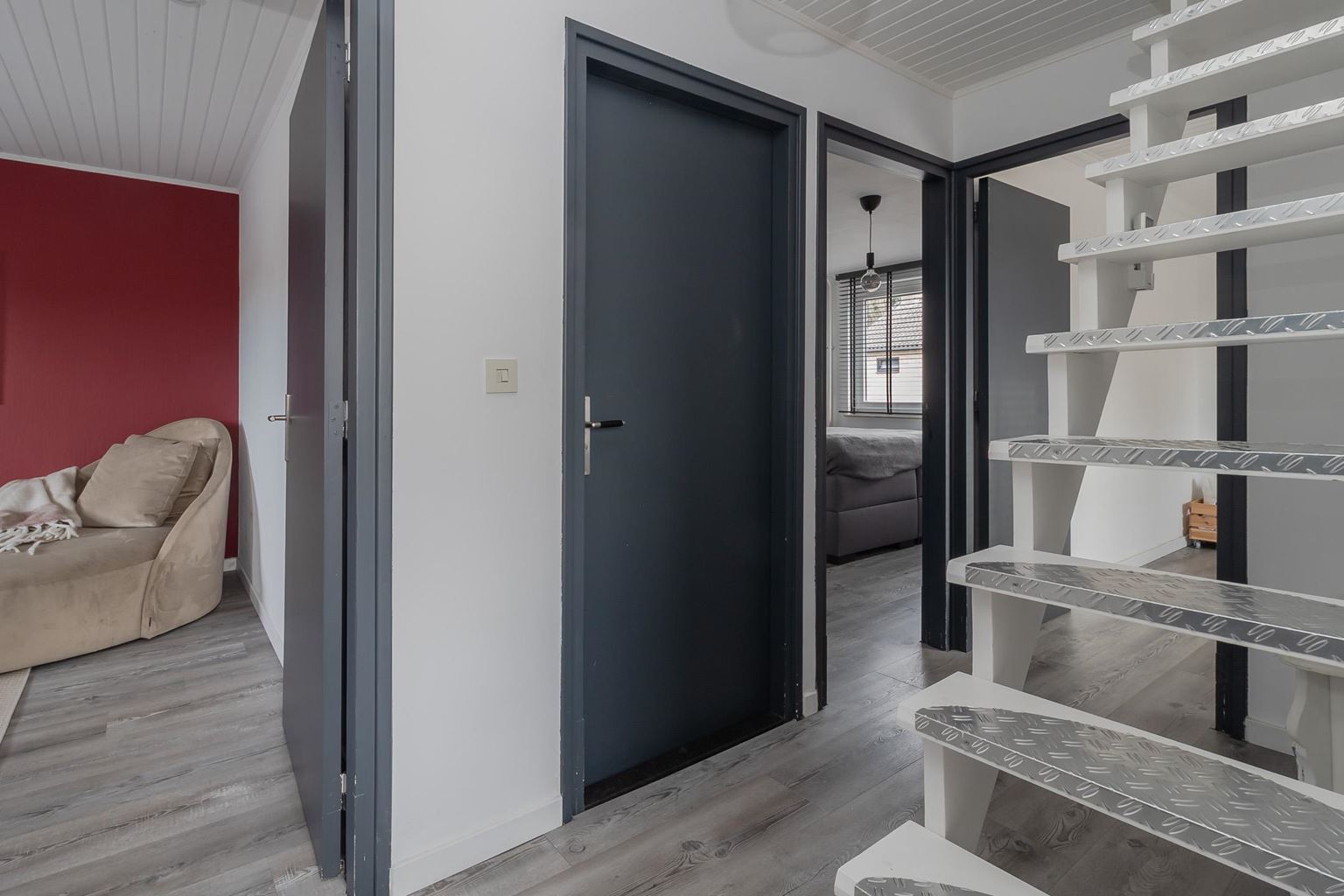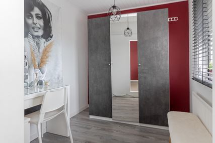 A fixed staircase leads to the spacious second floor, which offers a surprising amount of extra living space. The generous landing can be used for multiple purposes, such as a workspace, hobby room, or extra storage space. There is also practical storage space and a separate boiler room. On this floor is bedroom IV (approx. 11m²), a fully-fledged and bright room that is ideal as an extra bedroom, guest room, or home office. Both the landing and the bedroom have laminate flooring.
