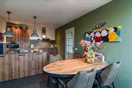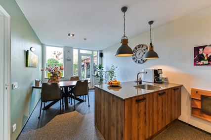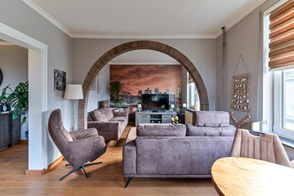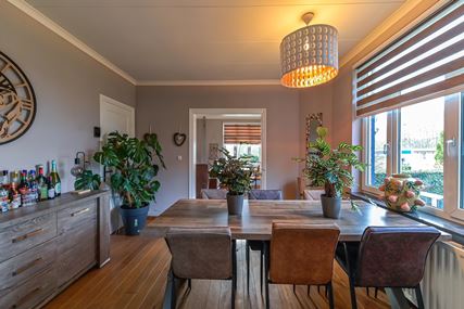 This spacious detached house, built in 1937, offers an ideal combination of comfortable living and multifunctional use. It features a separate kitchen, a spacious dining and living room, and no fewer than four bedrooms, one of which is accessible via a fixed staircase to the attic. With a double garage and attached space, it is particularly suitable for working from home or practising an independent profession. The house is easily accessible via the driveway at the rear, which provides extra privacy and practical ease of use. The house has energy label C, 16 solar panels, 3 air conditioners and an insulated roof.