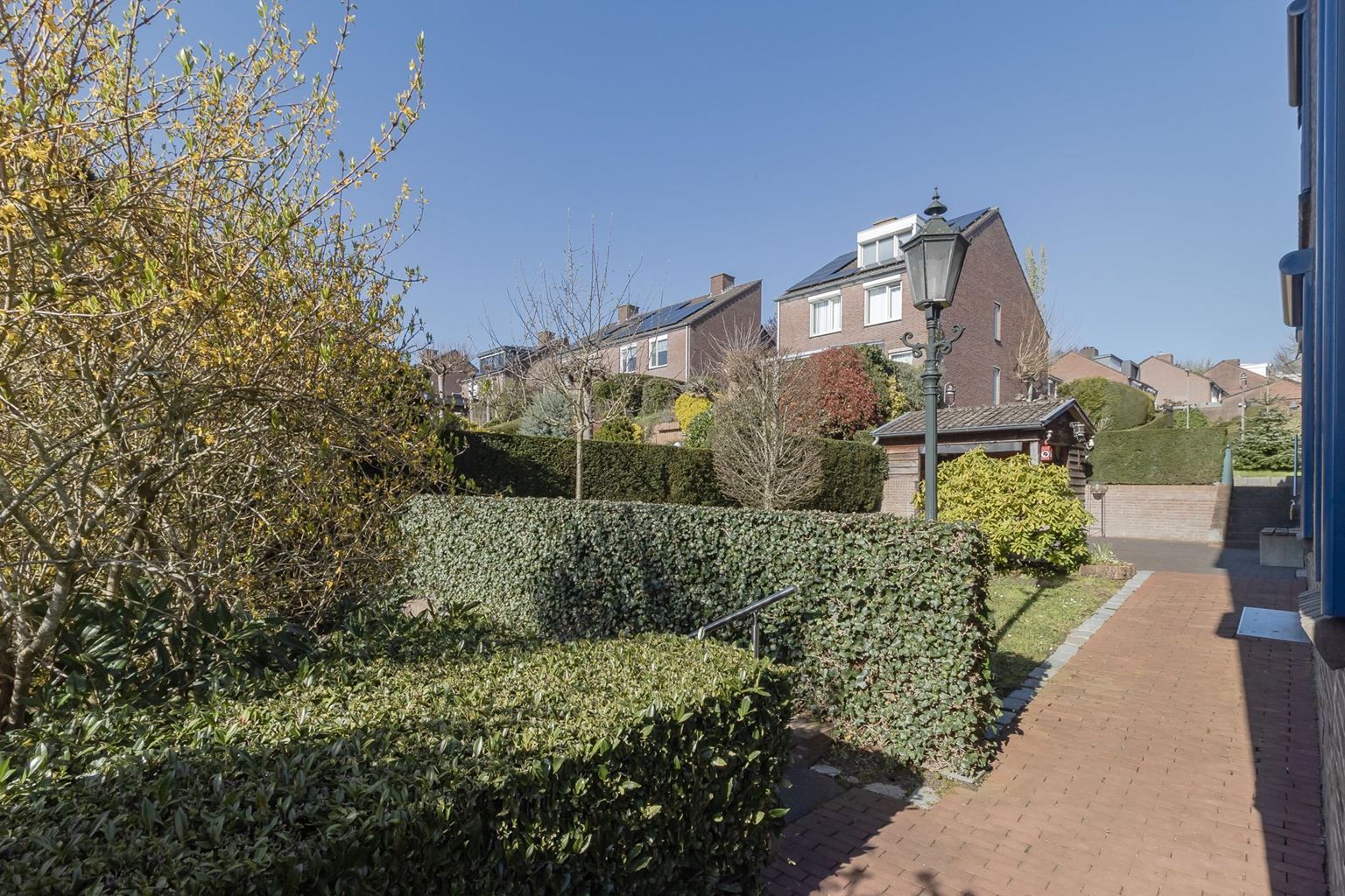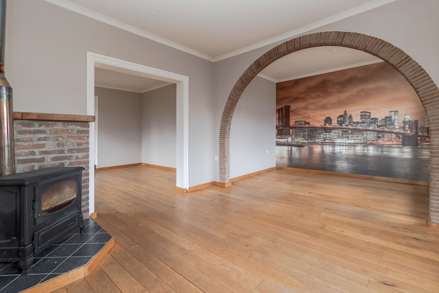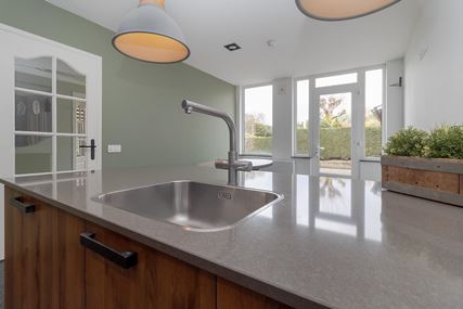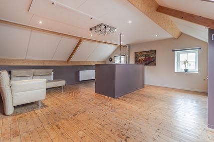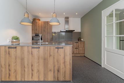 This spacious detached house, built in 1937, offers an ideal combination of comfortable living and multifunctional use. It features a separate kitchen, a spacious dining and living room, and no fewer than four bedrooms, one of which is accessible via a fixed staircase to the attic. With a double garage and attached space, it is particularly suitable for working from home or practising an independent profession. The house is easily accessible via the driveway at the rear, which provides extra privacy and practical ease of use. The house has energy label C, 16 solar panels, 3 air conditioners and an insulated roof.