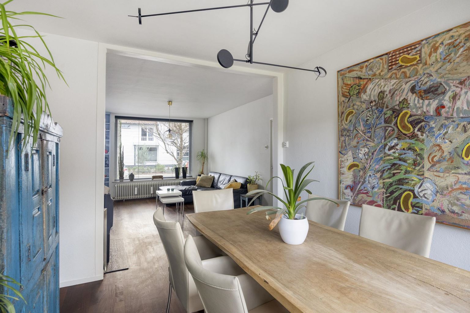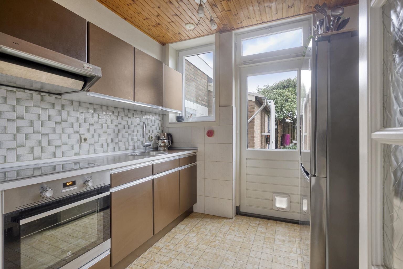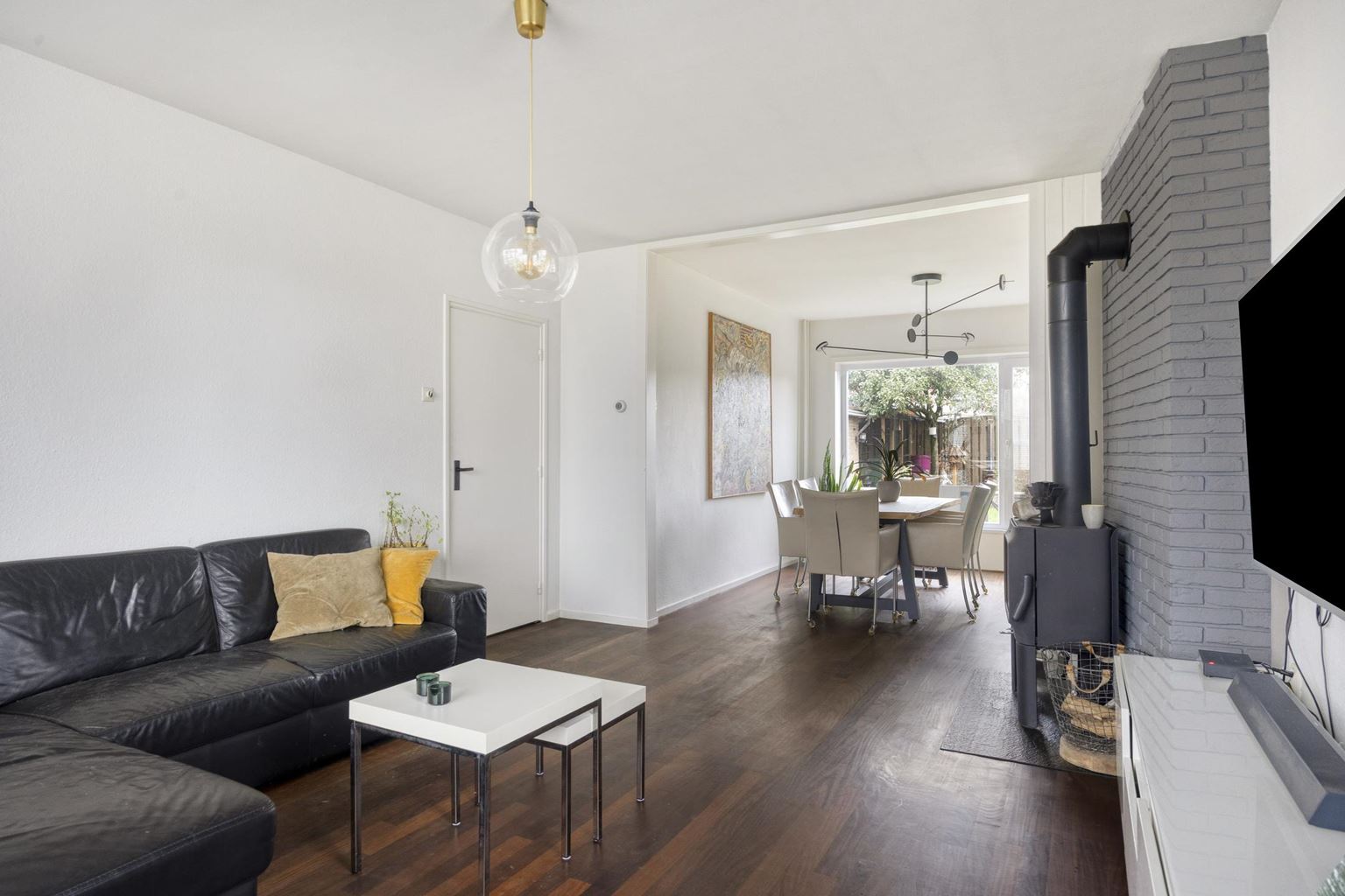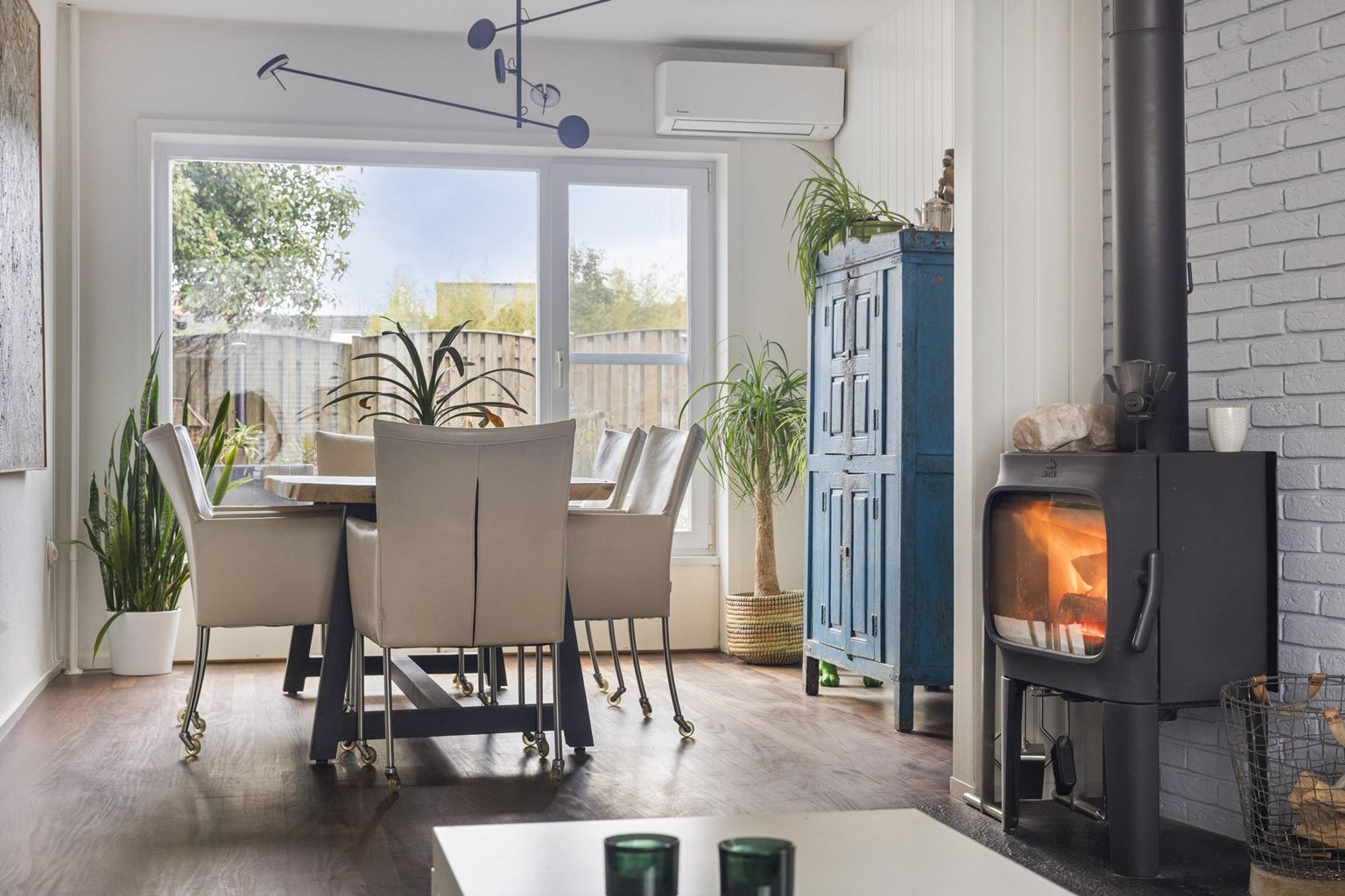 - Deels voorzien van houten kozijnen met dubbel glas op de begane grond, kunststof kozijnen met HR++ op de eerste verdieping;