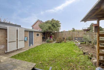 De circa 13 meter diepe tuin biedt veel privacy en is gesitueerd op het noordwesten. De tuin is deels betegeld en beschikt over volwassen beplantingen en een berging (ca.8m²). In de berging bevindt zich de wasmachine aansluiting en een keukenblok.
