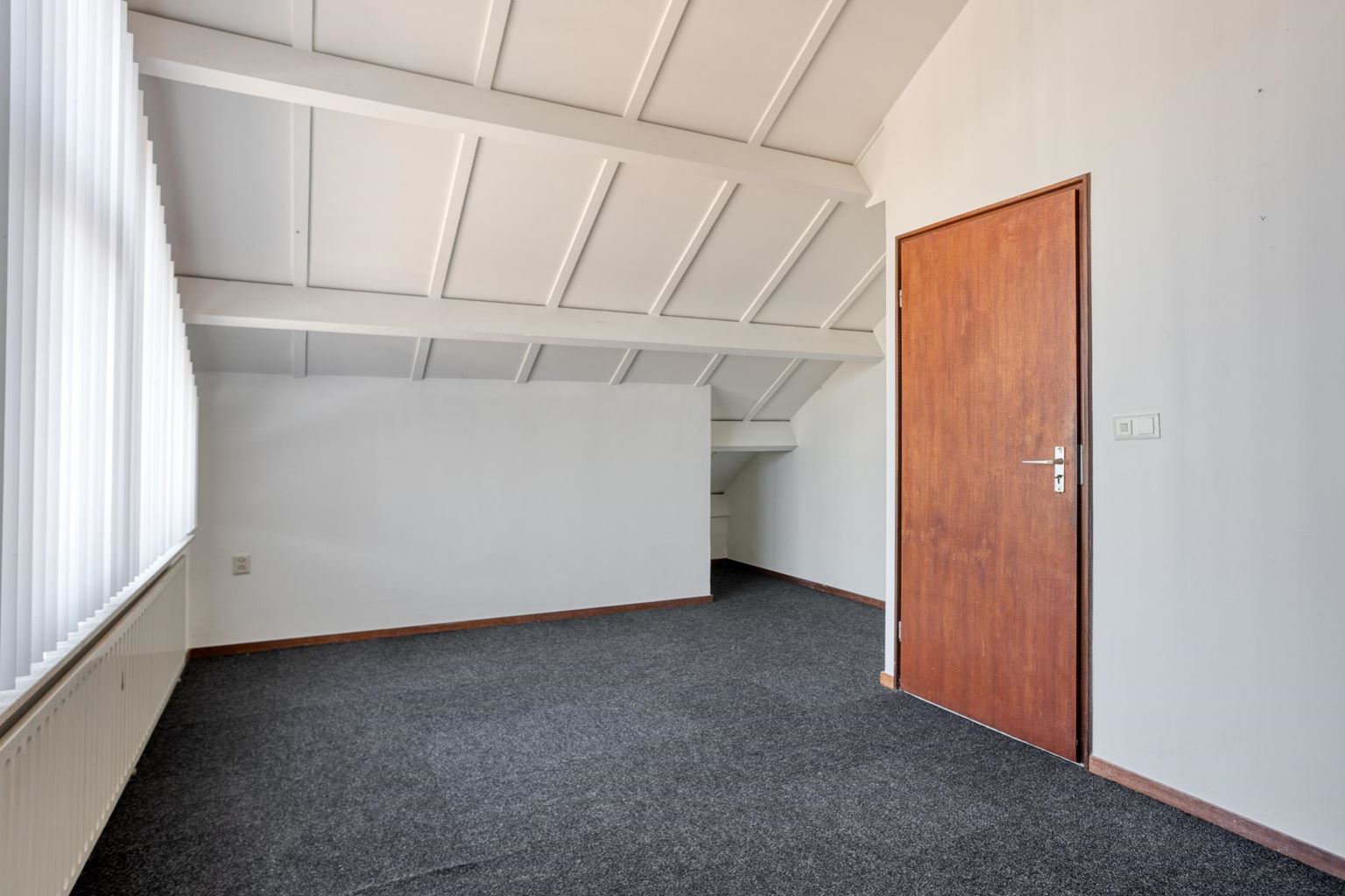 Bereikbaar via de vaste trap, hier bevindt zich slaapkamer V (ca.18m²), met een ruimtelijk gevoel door plafondhoogte tot aan het dak. De vloer is van niet verlijmde tapijttegels voorzien. De bergruimte (ca.14m²) biedt veel plek voor opslag, ook zijn hier de cv-ketel en de boiler geïnstalleerd.