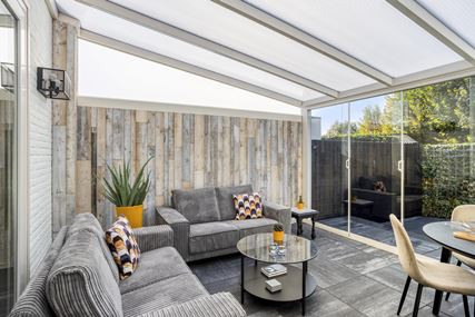 Betegelde voor- en achtertuin. Deze laatste ligt op het zuiden, waardoor je van veel zonuren kunt profiteren. Daarnaast beschikt de woning over een separate garage, ideaal voor hobby, opslag of het stallen van een auto. De garage is zowel via achterom als via de voorzijde bereikbaar.