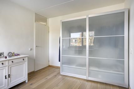 Overloop, die toegang biedt tot drie slaapkamers, badkamer en de trapopgang naar de zolder. Slaapkamer I (ca.7m²) momenteel in gebruik als opslagruimte, maar dit kan ook dienst doen als kinderkamer of werkkamer. Slaapkamer II is de hoofdslaapkamer (ca.12m²). Slaapkamer I en II bevinden zich aan de achterzijde van de woning. De geheel betegelde badkamer (ca.5m²) met douche, wastafel in meubel en spiegelkast in wit uitgevoerd. De badkamervloer voorzien van een keramische tegel in Portugees motief. Slaapkamer III (ca.11m²), net als de badkamer aan de voorzijde gelegen. De slaapkamers en de overloop zijn voorzien van mooie wit eiken, houten vloeren.