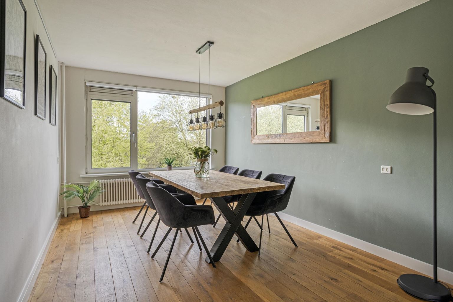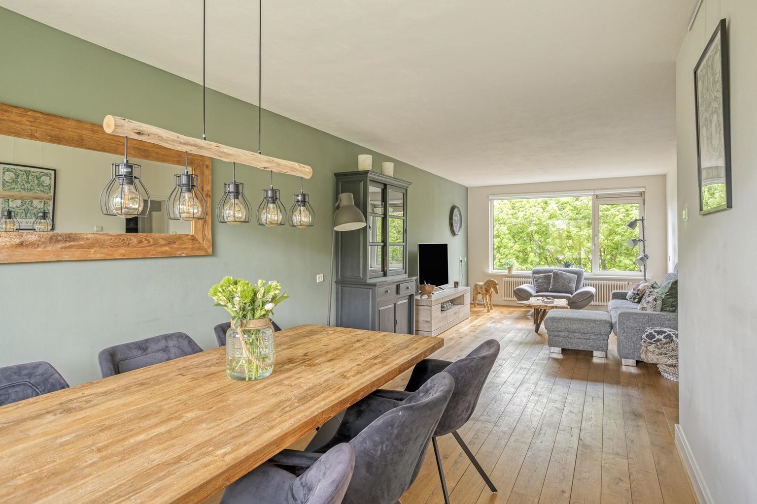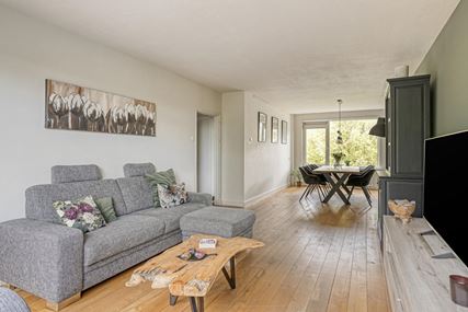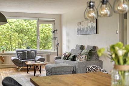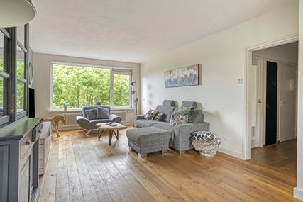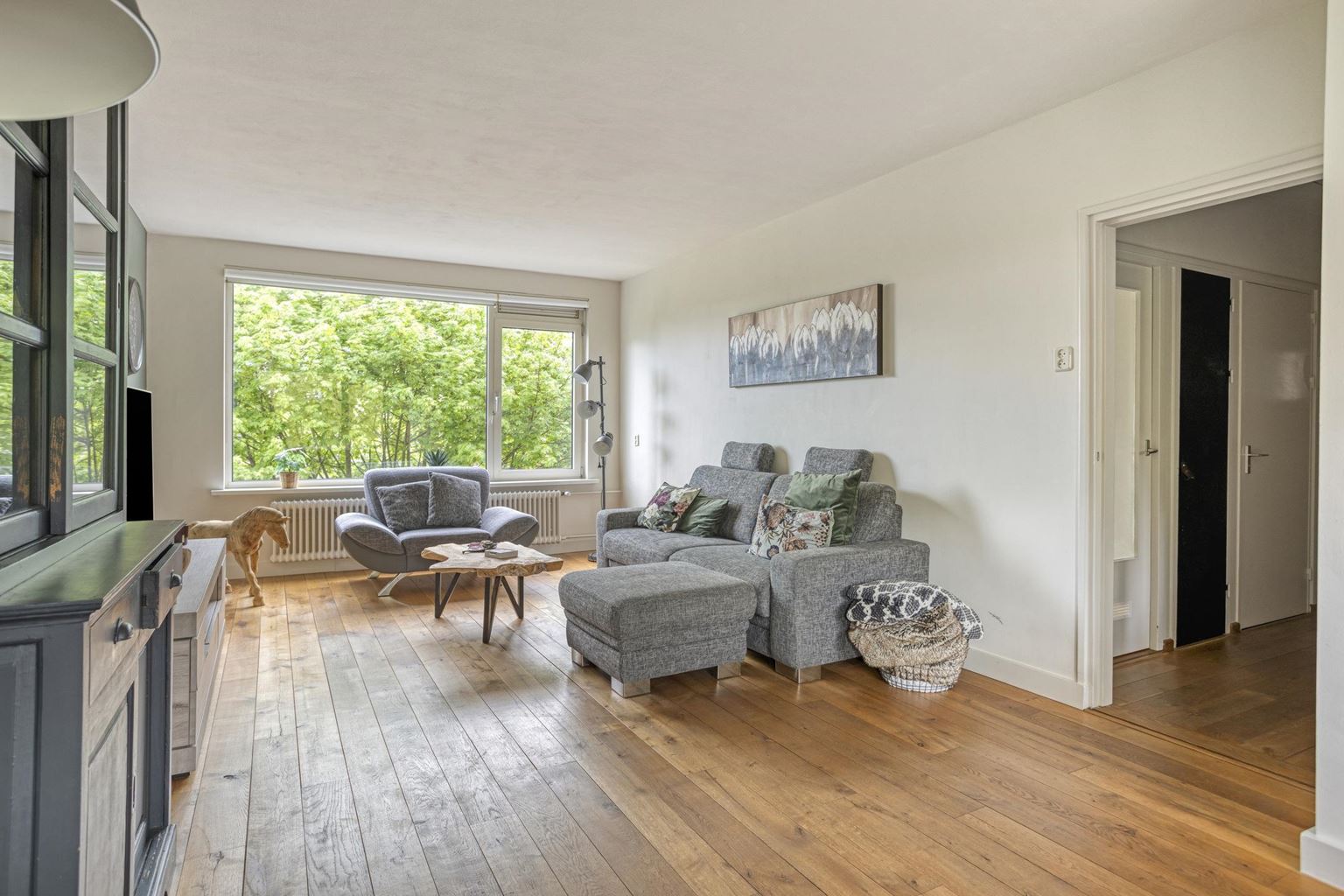 Via de entree/hal zijn alle vertrekken toegankelijk. De ruime woonkamer van circa 33 m² vormt het hart van de woning en kenmerkt zich door de grote raampartijen aan zowel de voor- als achterzijde, wat zorgt voor een uitstekende lichtinval. De woonkamer is afgewerkt met een nette parketvloer en biedt diverse indelingsmogelijkheden.