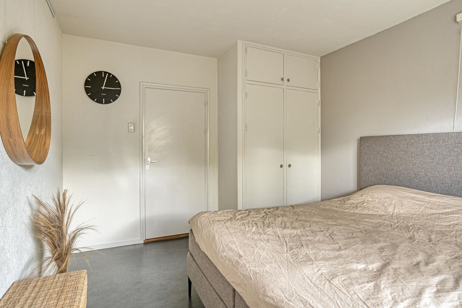 Aan de achterzijde van het appartement bevinden zich twee slaapkamers van respectievelijk circa 12 m² en 10 m². Beide kamers zijn voorzien van een linoleumvloer en genieten van een rustige ligging. De grootste slaapkamer beschikt over een royale muurkast en biedt directe toegang tot het zonnige balkon aan de achterzijde.