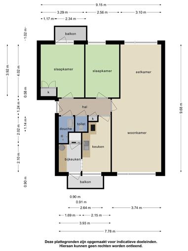 - Alle vermelde afmetingen zijn indicatief en kunnen afwijken van de werkelijkheid.