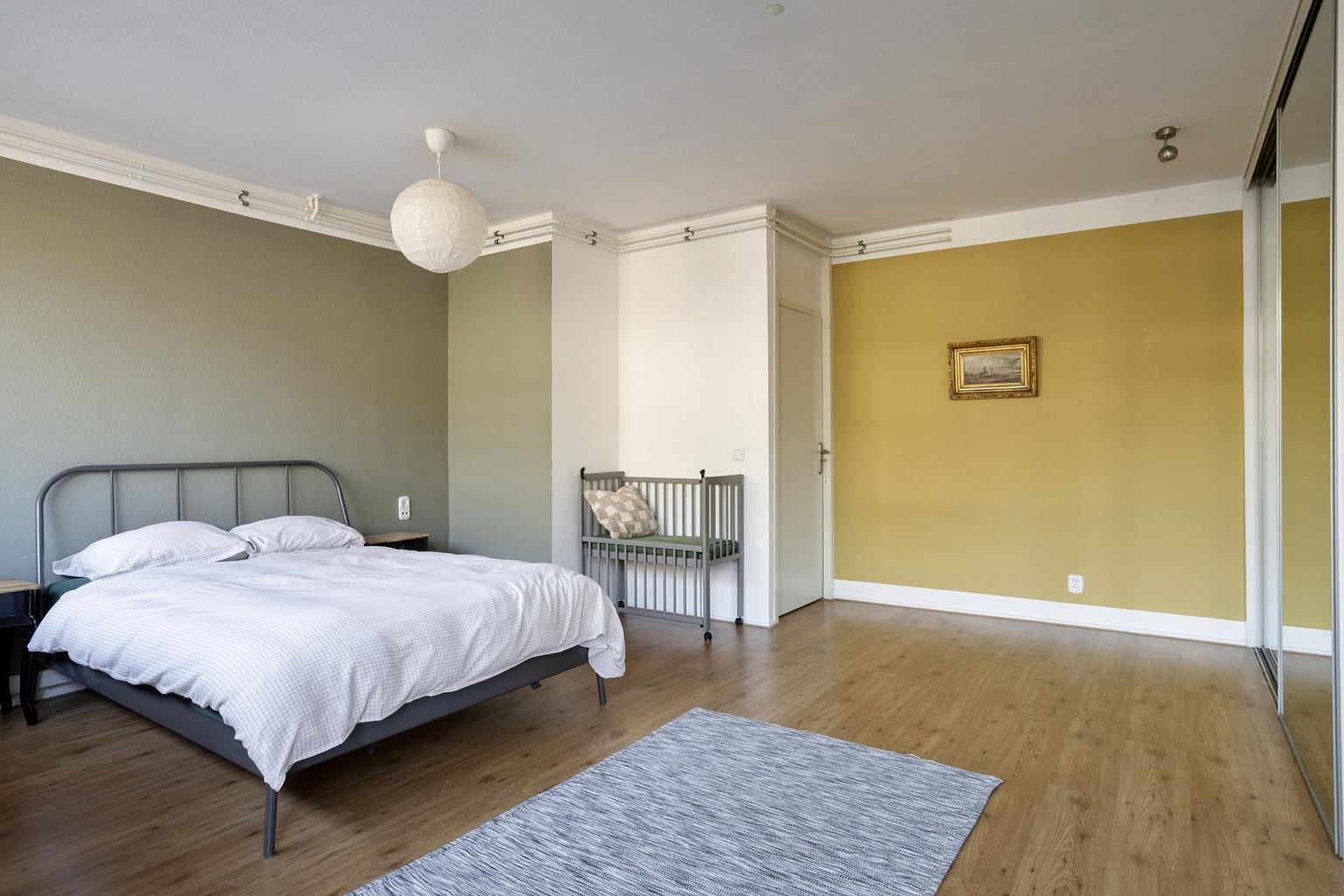 De eerste slaapkamer (16 m²) is gelegen aan de achterzijde van het appartement en kenmerkt zich door een prettige lichtinval dankzij de grote raampartijen. De ruimte is afgewerkt met een mooie laminaatvloer en biedt voldoende plaats voor een tweepersoonsbed en aanvullende kastruimte.
