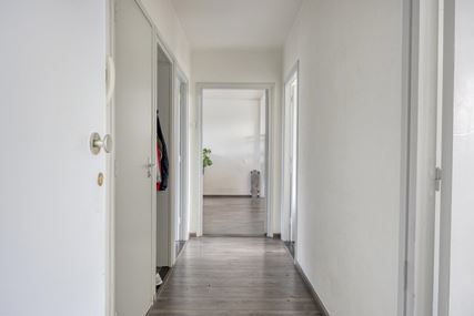 Via de entree komt u in de centrale hal, die toegang biedt tot alle vertrekken van het appartement.