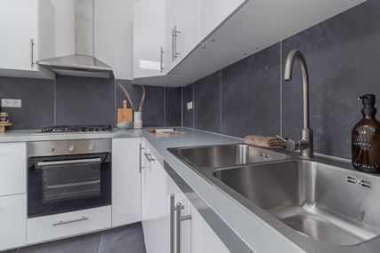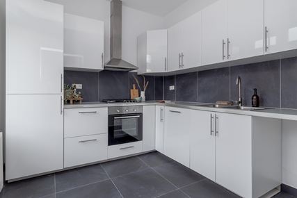 | Keuken apparatuur | : | dubbele spoelbak, 4-pits gasfornuis, oven, koelkast hoog model met vriesvak, vaatwasser, afzuigkap |