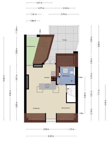 - Alle vermelde afmetingen zijn indicatief en kunnen afwijken van de werkelijkheid.