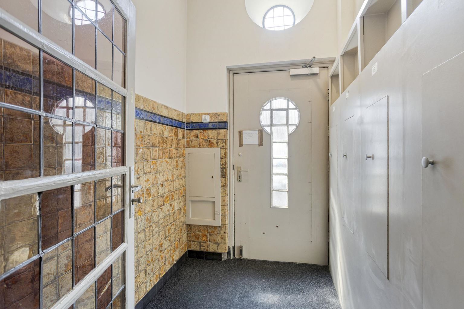 Binnenkomst via de entree met postvakken en eigen meterkasten. De entree loopt over in een centrale hal met toegang tot het souterrain en de trapopgang naar de verdiepingen. Tweede verdieping: Vanaf de overloop van de tweede verdieping bereikt men de gesloten trapopgang naar appartement 12-D.
