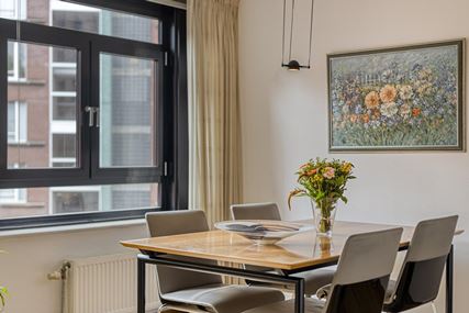 Kortom, dit stijlvolle en goed ingedeelde appartement biedt een comfortabele woonomgeving met hoogwaardige afwerking, veel lichtinval en praktische ruimtes. Dankzij de drie slaapkamers, de ruime bijkeuken, het moderne sanitair en de loggia met uitzicht op de binnentuin, is deze woning uitermate geschikt voor zowel stellen als gezinnen die op zoek zijn naar comfort en kwaliteit. Gelegen op een aantrekkelijke locatie met alle voorzieningen binnen handbereik, vormt dit appartement een ideale basis voor jarenlang woonplezier.