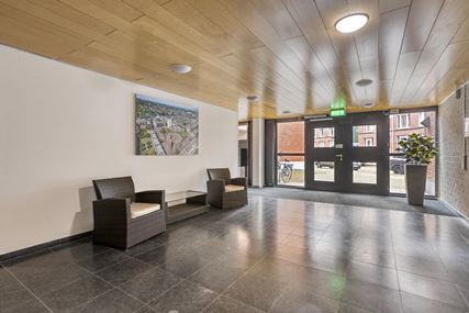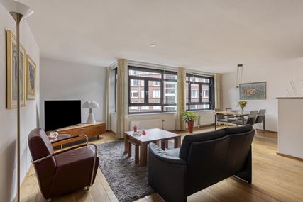 De ruime en lichte woonkamer (33m²) bevindt zich aan de voorzijde van het complex en kenmerkt zich door de grote raampartijen die zorgen voor een aangename lichtinval gedurende de dag. Dankzij de royale opzet is er voldoende ruimte voor een comfortabele zit- en eethoek.