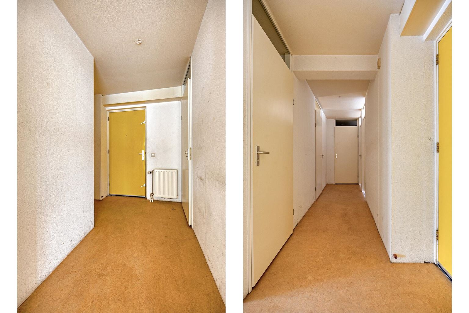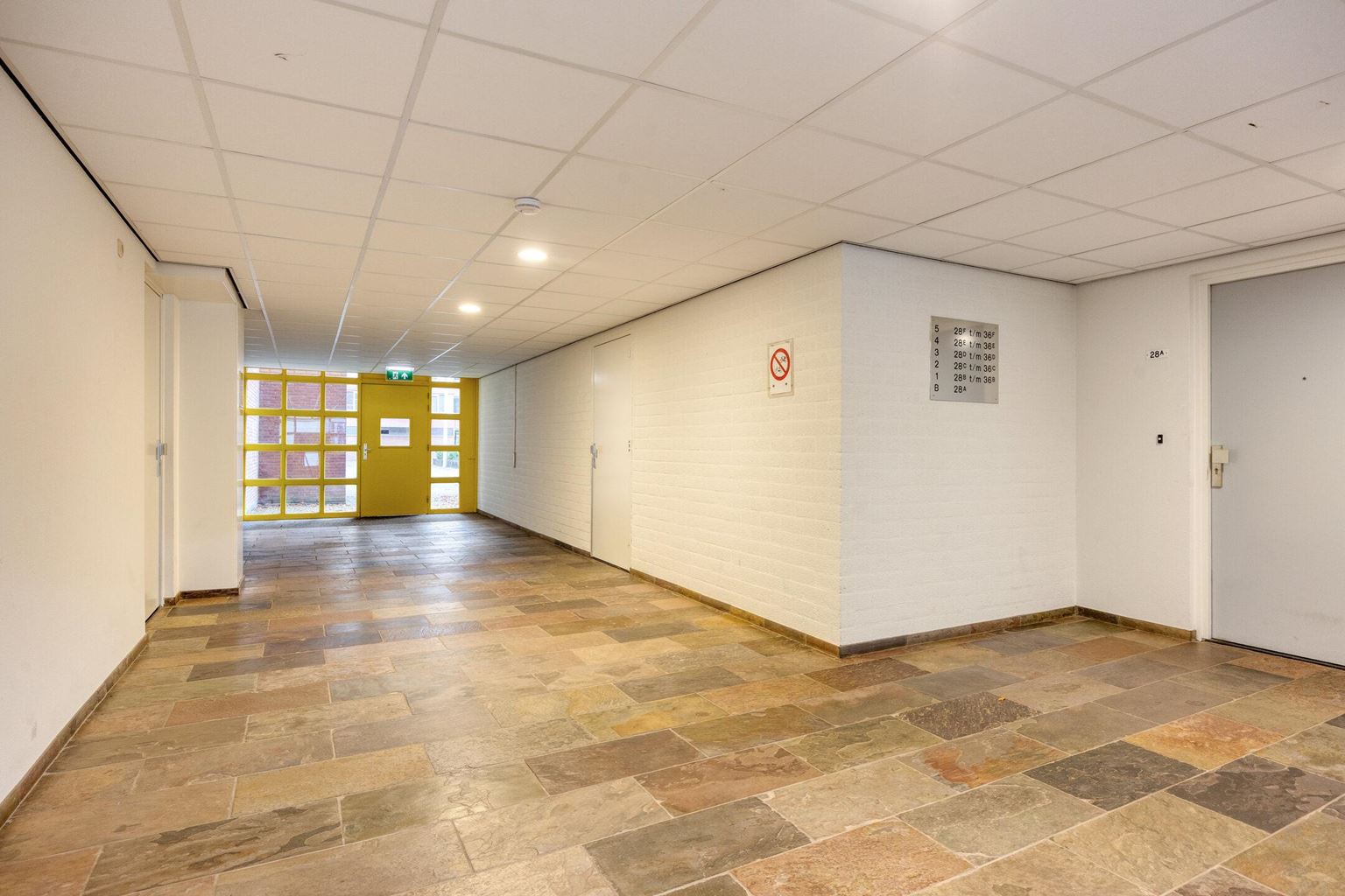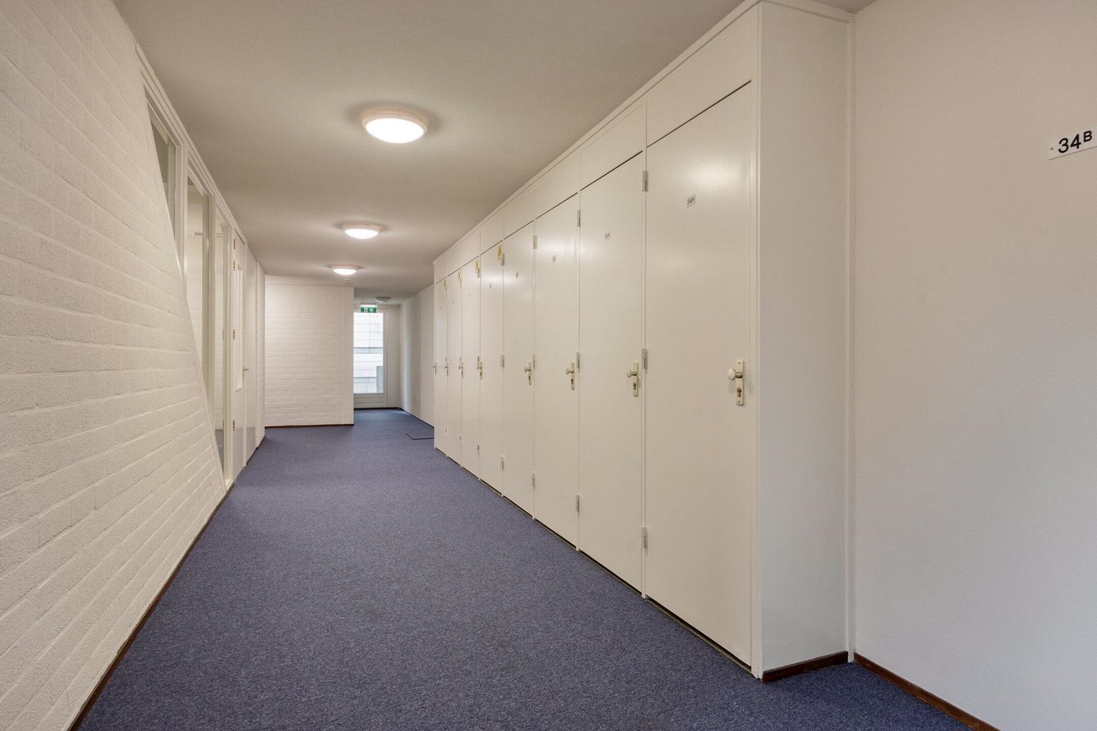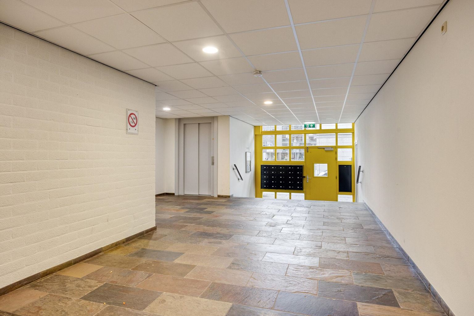 Via de lift of met de trap bereikt men de corridor van de eerste verdieping, alwaar direct toegang naar het appartement. Naast de voordeur bevinden zich een tweetal technische ruimtes: meterkast (met automatische groepen en slimme meters) en de berging met de unit voor de stadsverwarming.