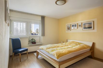 De slaapkamer aan de voorzijde biedt toegang tot een balkon op het zuiden. Dit balkon (15m²) is gedeeltelijk overdekt en voorzien van een handmatig bedienbaar zonnescherm, waardoor u hier op zonnige dagen aangenaam kunt zitten.