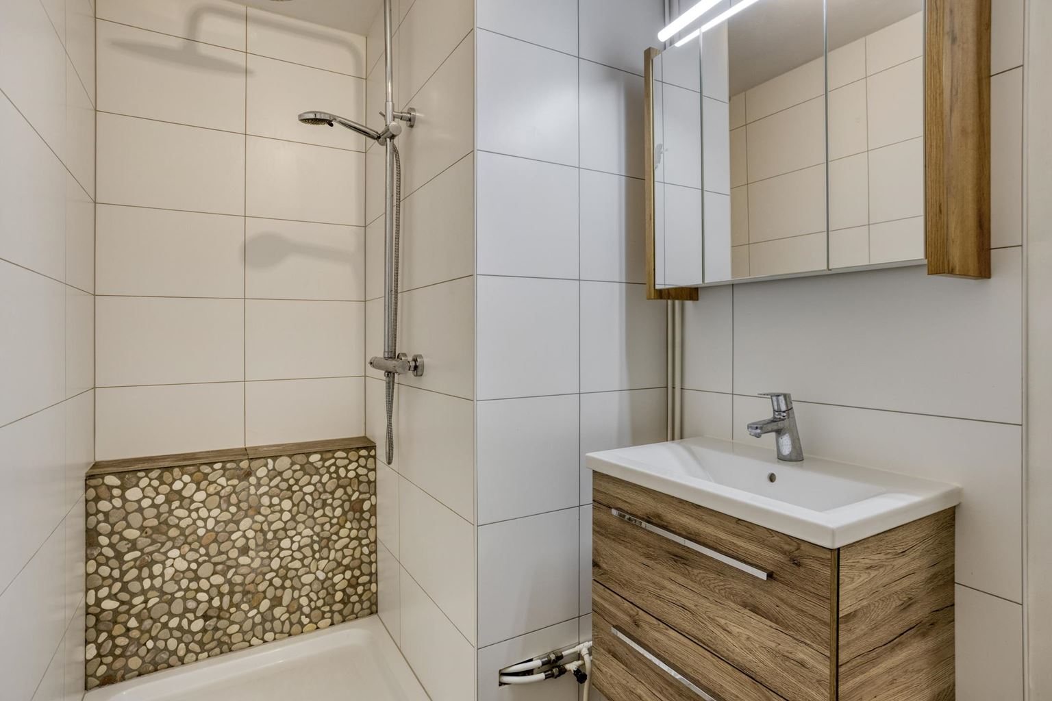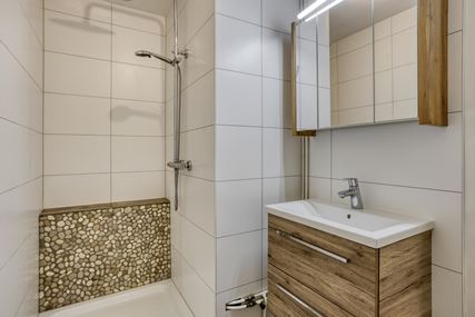 De woning beschikt over twee volwaardige slaapkamers van respectievelijk 11m² en 9m². De badkamer (4m²) is in 2023 volledig vernieuwd en modern uitgevoerd met een regendouche, een vaste wastafel met meubel en een volledig betegelde afwerking. Op de badkamer zijn eveneens de aansluitingen voor de wasmachine. Daarnaast is er een separaat toilet met staand closet aanwezig.