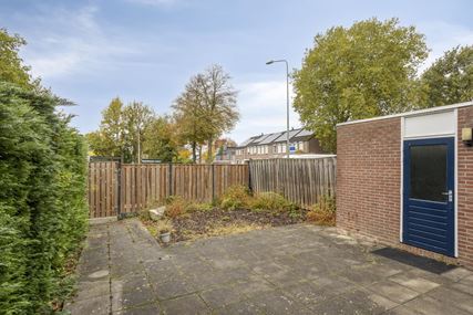 De achtertuin is grotendeels betegeld en daarmee onderhoudsvriendelijk ingericht. De tuin beschikt over een achterom en een vrijstaande berging (5m²) die vanuit de tuin bereikbaar is. Deze ruimte is ideaal voor het stallen van fietsen of het opbergen van tuingereedschap.