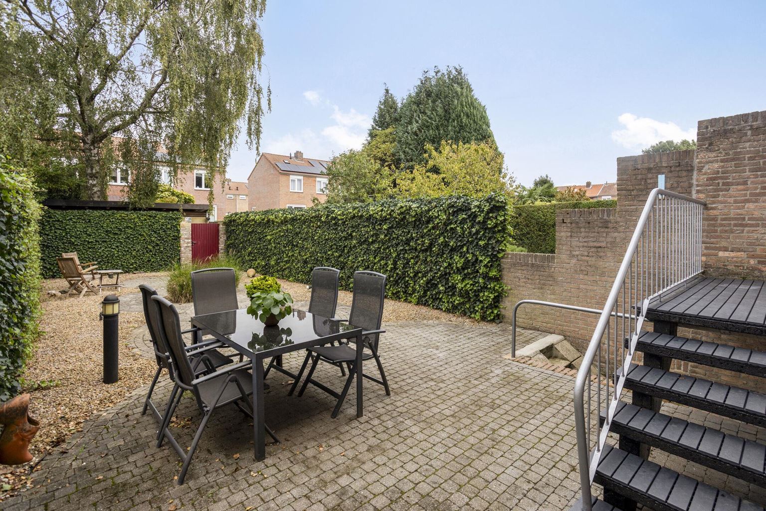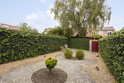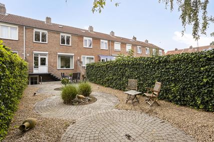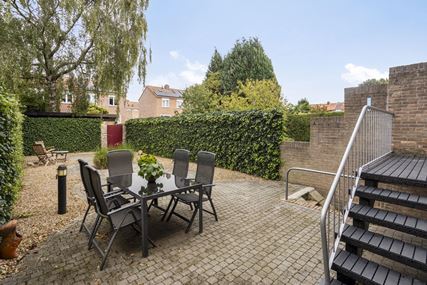 De achtertuin is onderhoudsarm aangelegd en biedt een heerlijke buitenruimte met volop zon en privacy. Dankzij de diepte van de tuin zijn er zowel zon- als schaduwplekken gedurende de dag. De tuin beschikt over een achteringang en is eveneens bereikbaar via het souterrain.