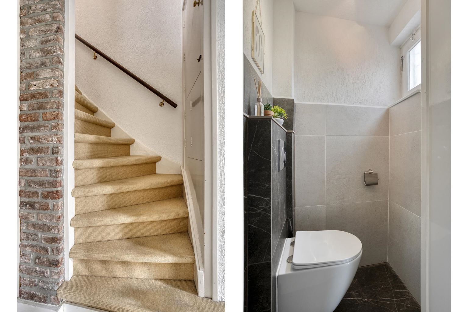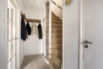 Bij binnenkomst in de woning komt u terecht in de hal (6m²) met een moderne toiletruimte, welke in 2023 is vernieuwd en is voorzien van een wandcloset. Vanuit de hal zijn zowel de trap naar de eerste verdieping als de trap naar het souterrain bereikbaar. De gehele begane grond (m.u.v. het toilet) is voorzien van een verzorgde laminaatvloer.