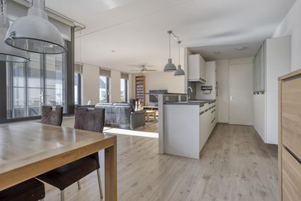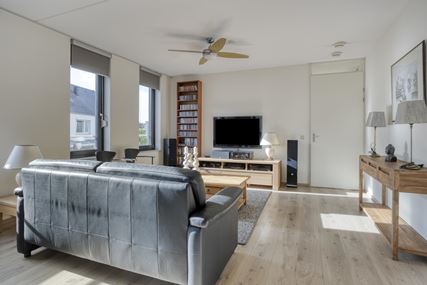Entree/hal (ca. 10m²) met garderobe en toegang tot alle vertrekken. Geheel betegelde badkamer (ca. 6m²) met ligbad, inloopdouche met glazen deur, wastafel met meubel, spiegel en verlichting, losse badkamerkast, designradiator en mechanische ventilatie. Separate toiletruimte (ca. 1,5m²), geheel betegeld en voorzien van een wandcloset en een fonteintje. Slaapkamer I (ca. 15,5m²) voorzien van vaste kastenwand met schuifdeur. Slaapkamer II (ca. 9,5m²). Sfeervolle, ruime en zonnige living met open keuken (totaal ca. 47m²), met directe toegang naar inpandig balkon (ca. 9,5m²). De eethoek (ca. 11,5m²) staat in open verbinding met de keuken. De zitkamer (ca. 27m²) biedt rechtstreeks toegang tot het balkon. Tevens is in de woonkamer een airo aanwezig, welke kan koelen en verwarmen. Open keuken (ca. 8m²) met een moderne, witte keukeninstallatie in rechte opstelling, voorzien van diverse boven- en onderkasten, wandkast, laden en de volgende apparatuur: afzuigkap, inductiekookplaat met 4 zones, combi-oven, vaatwasser, koelkast en werkblad met 1,5 spoelbak. Aansluitend aan de keuken bevindt zich de bijkeuken/Cv-berging (ca. 4m²) met de witgoedaansluitingen, opstelling Cv-ketel (merk: Intergas Compact HR, combi, eigendom & bouwjaar 2007) en de warmte-terugwin-installatie.