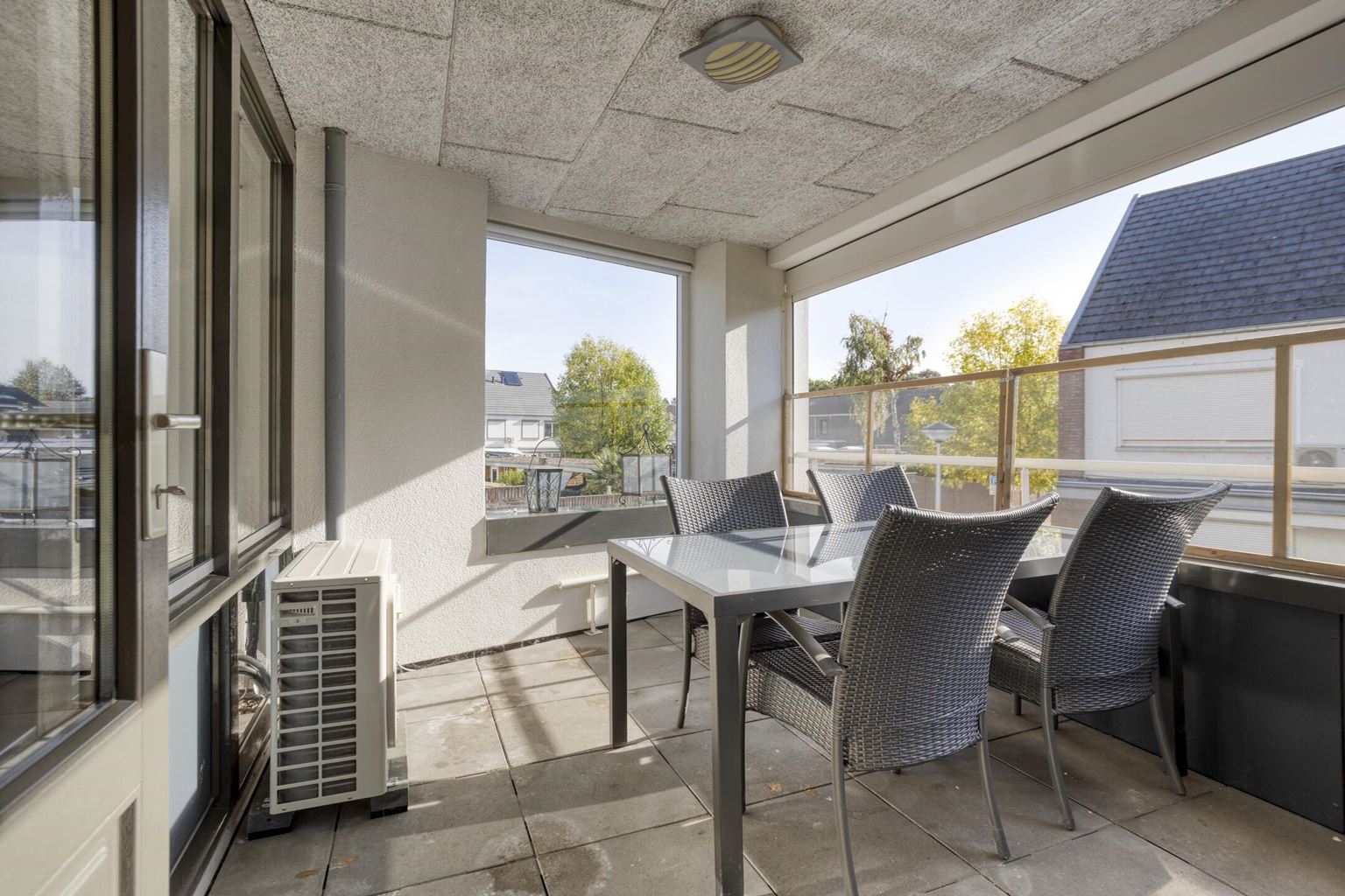 - Elektrisch bedienbaar rolluik aanwezig bij lange zijde van het balkon;