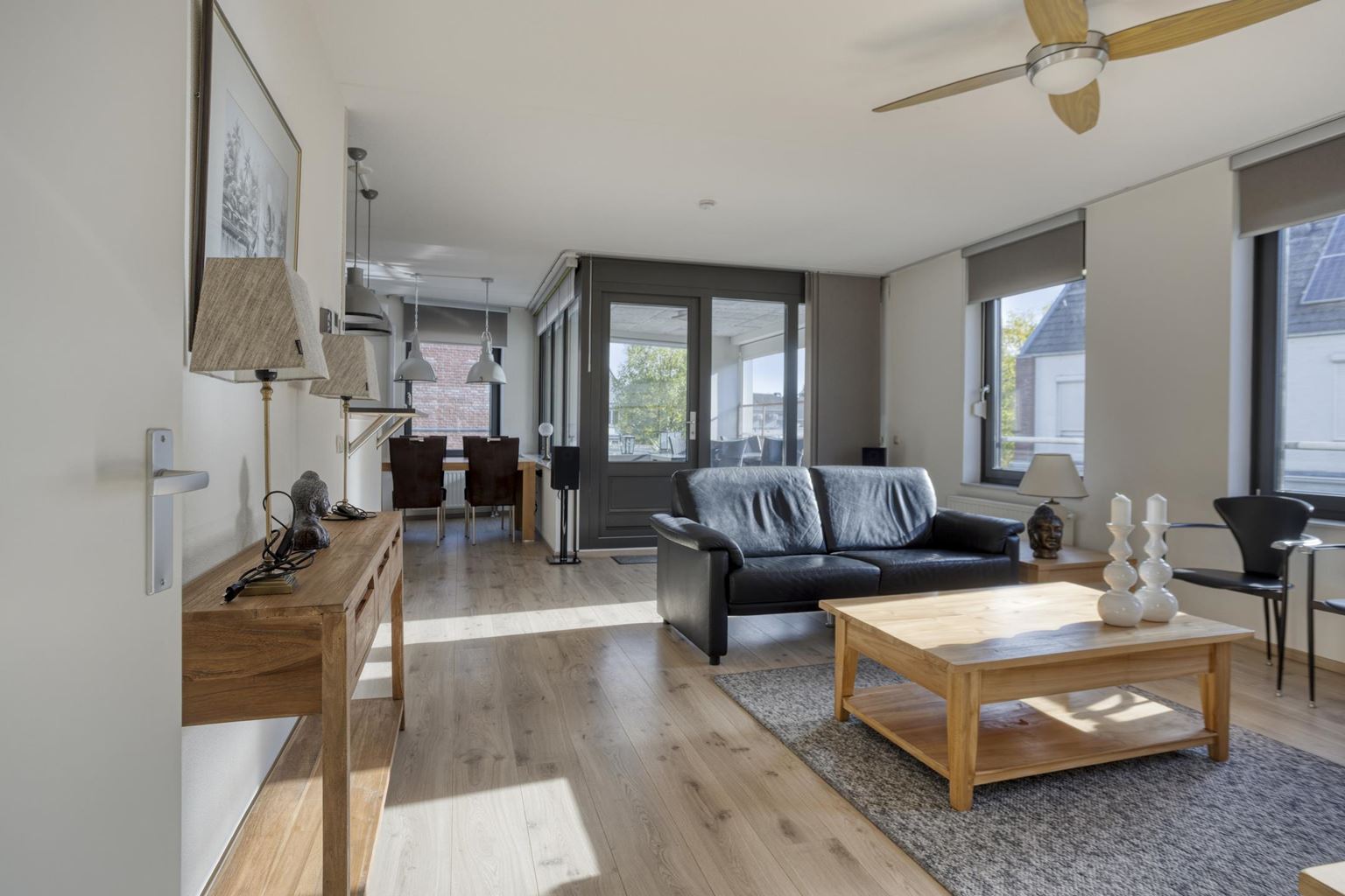 Het gehele appartement (m.u.v. toilet en bakkamer) is voorzien van een keurige en doorlopende laminaatvloer, hardhouten kozijnen met isolerende HR++ beglazing en handbedienbare screens aan de buitenzijde. Het balkon heeft aan de lange zijde een automatisch bedienbaar rolluik.