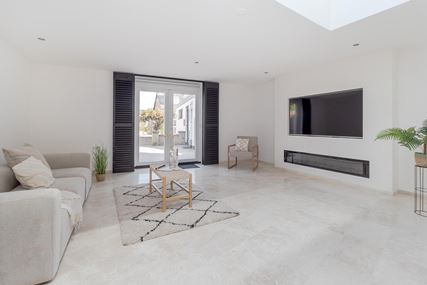 Centraal in de woning bevindt zich de ruime woon- en eetkeuken (18m²), een functioneel ingedeelde ruimte die volledig is uitgerust met hoogwaardige inbouwapparatuur. Hoewel deze ruimte zelf geen ramen heeft, is er sprake van een prettige verbinding met het daglicht uit de achtergelegen kamer/uitbouw. Dankzij de lichtstraat in de uitbouw wordt er veel natuurlijk licht doorgelaten, wat bijdraagt aan een open en lichte sfeer in de keuken.