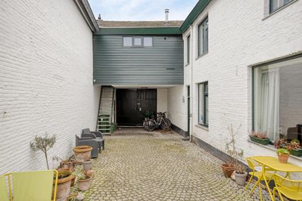 Via de afgesloten toegangspoort, voorzien van brievenbussen en een bellentableau, betreedt u de gezamenlijke cour. Deze binnentuin ademt de authentieke sfeer van het oorspronkelijke boerderijcomplex en beschikt over een overdekte fietsenstalling voor gezamenlijk gebruik.