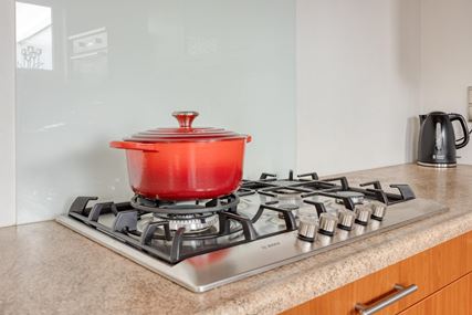 | Keuken apparatuur | : | spoelbak, 5 pits kookplaat, gas, combi magnetron, koelkast hoog model met vriesvak, vaatwasser, afzuigkap |