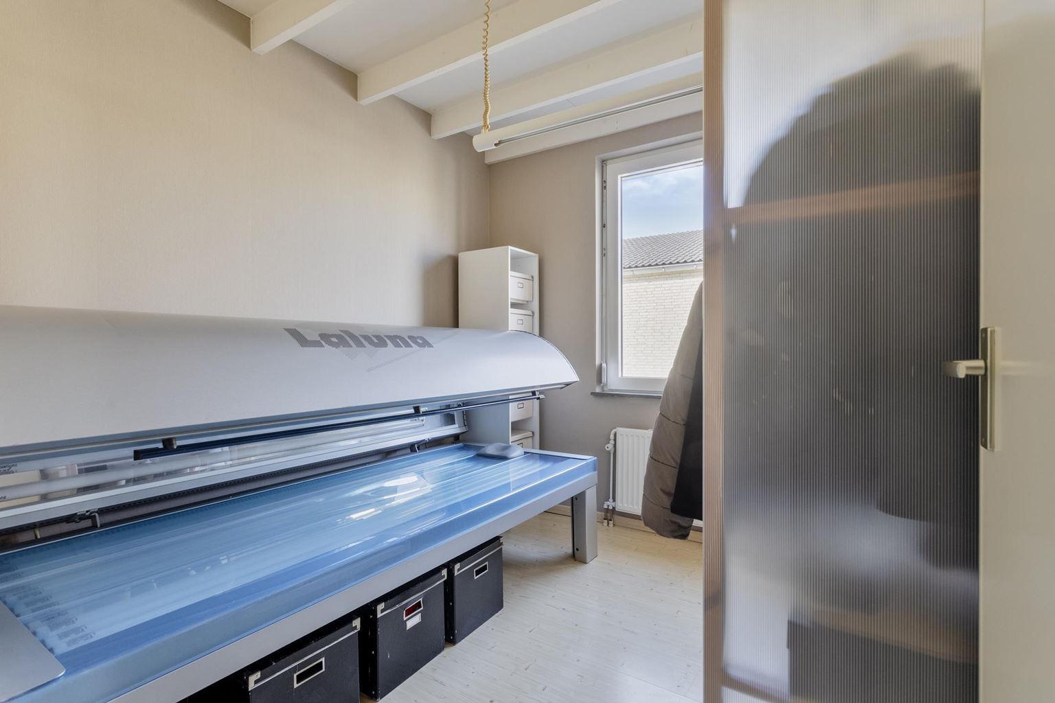 Verder bevindt zich op deze verdieping een separate berging/technische ruimte met aansluitingen voor de wasmachine. Tevens zijn hier de cv-ketel, de mechanische ventilatie-unit en de omvormer van de zonnepanelen opgesteld.