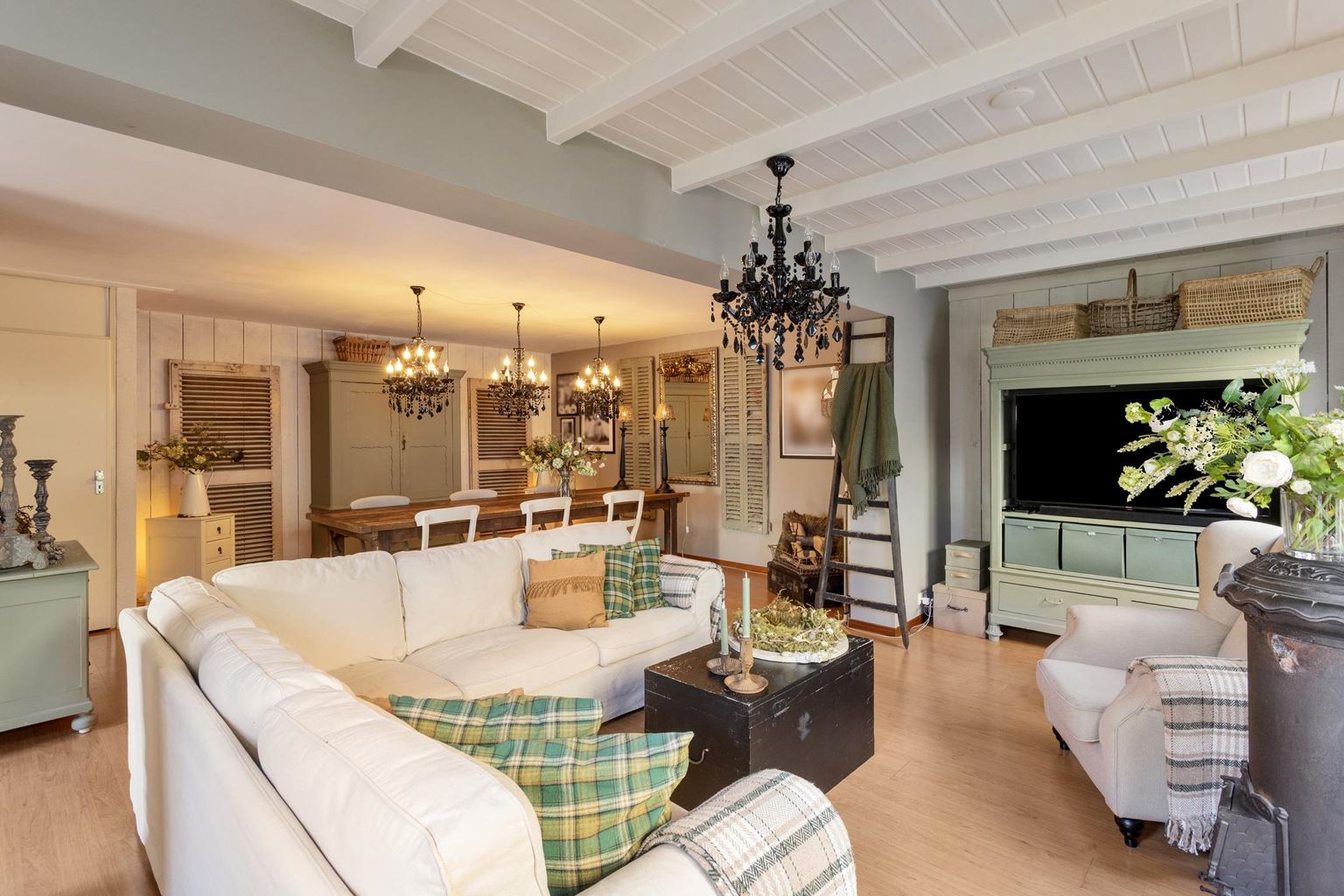 De ruime woonkamer (39m²) is tuingericht en beschikt over een praktische trapkast voor extra bergruimte. Dankzij de uitbouw aan de rechterzijde is er een comfortabele leefruimte ontstaan met voldoende plaats voor een royale zithoek en eethoek. Via openslaande deuren heeft u direct toegang tot de achtertuin, wat zorgt voor een prettige verbinding tussen binnen en buiten.